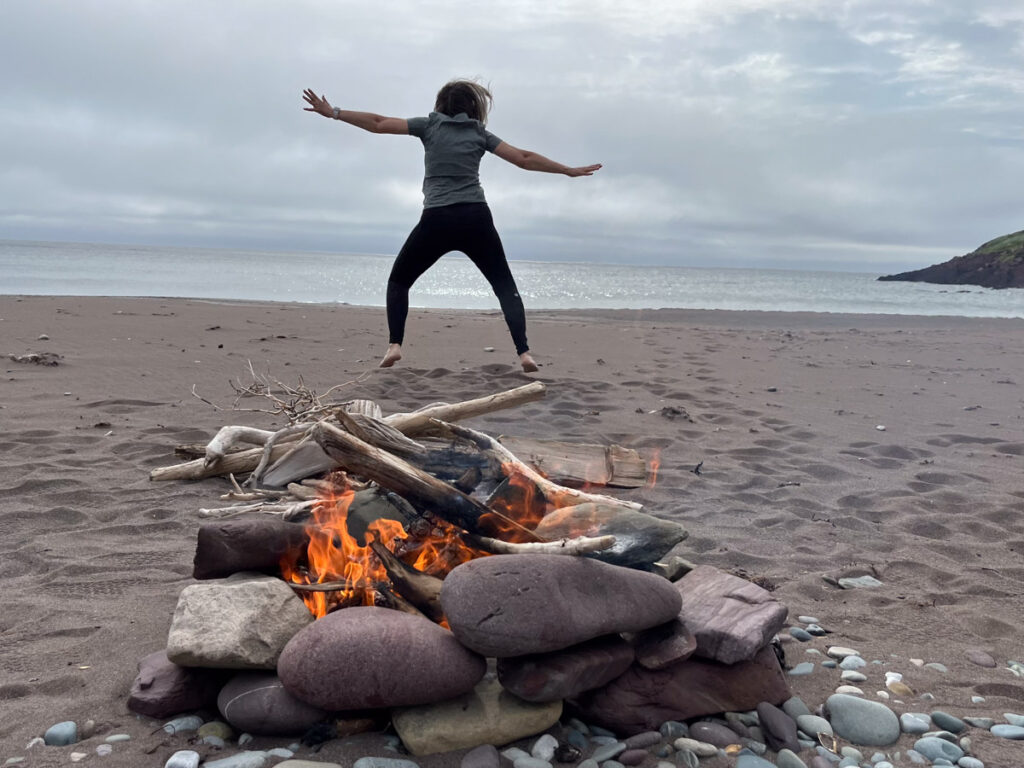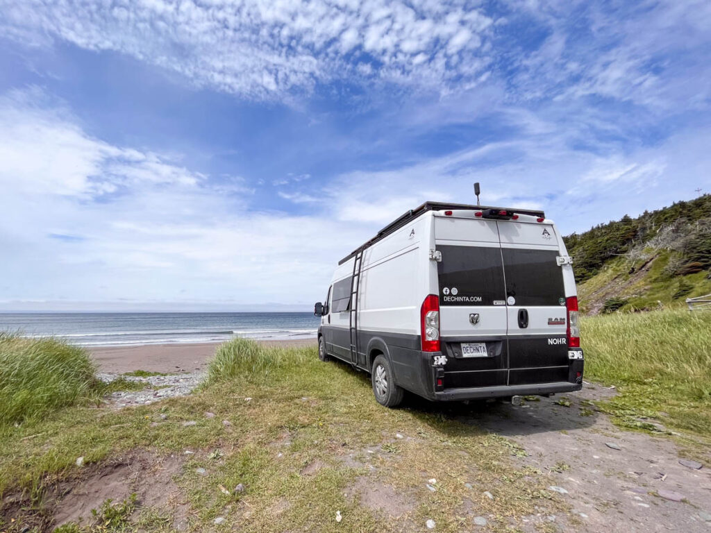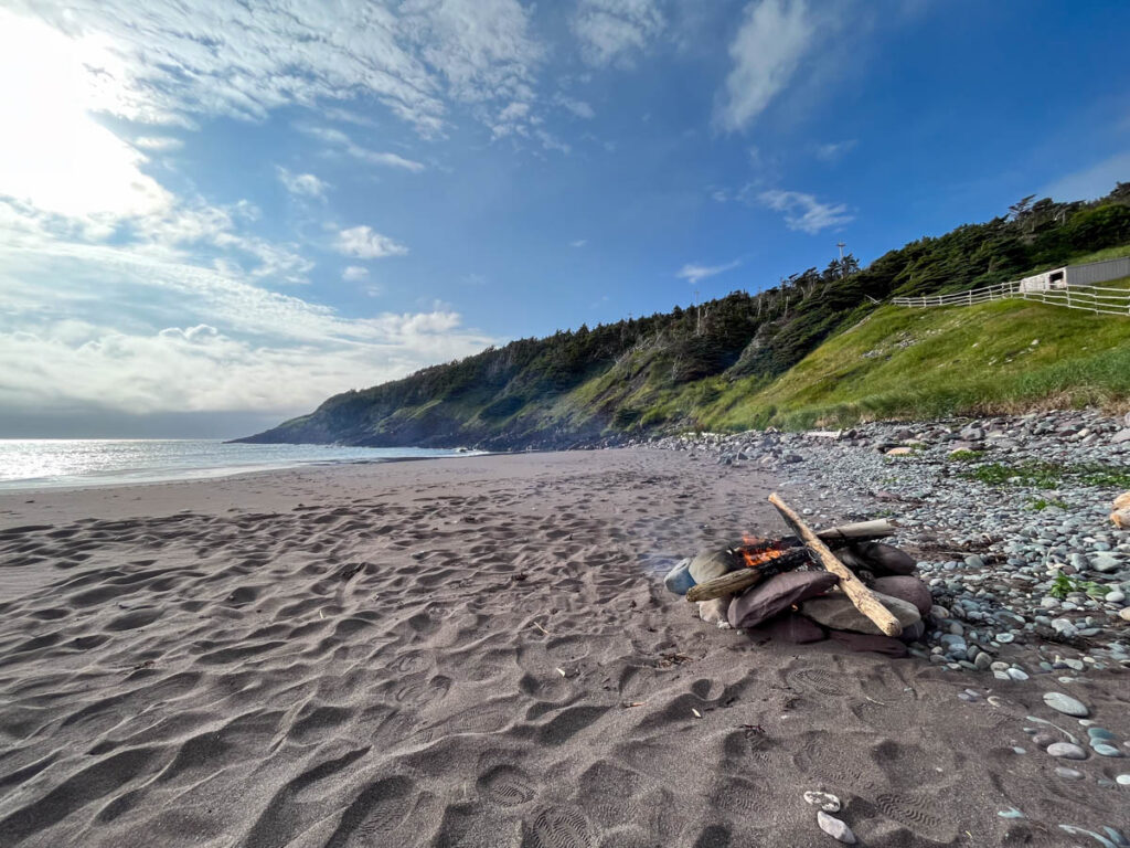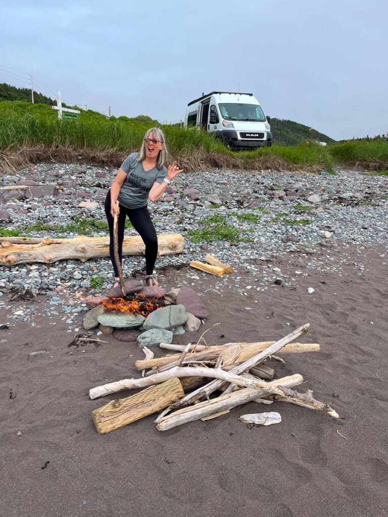 On se la coule douce, petites marches sur la plage, 4 heures de feu de grève, apéros, on sent l’érable, la vanlife à son meilleur…