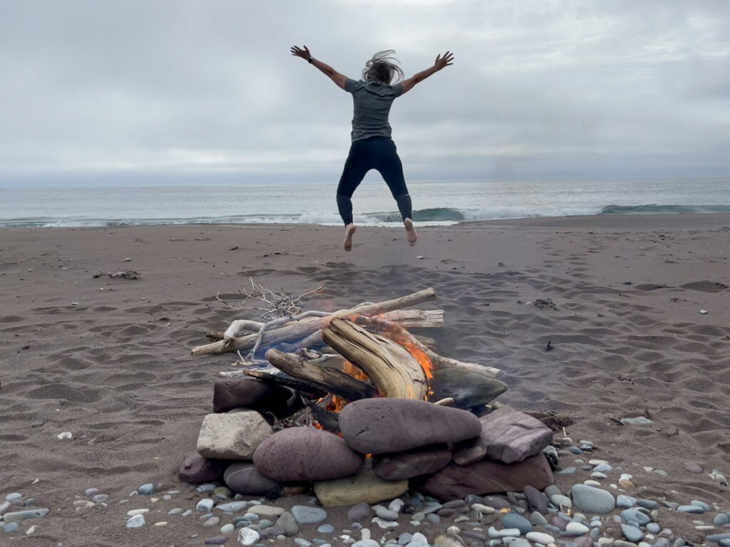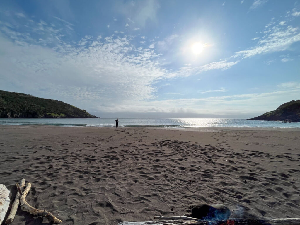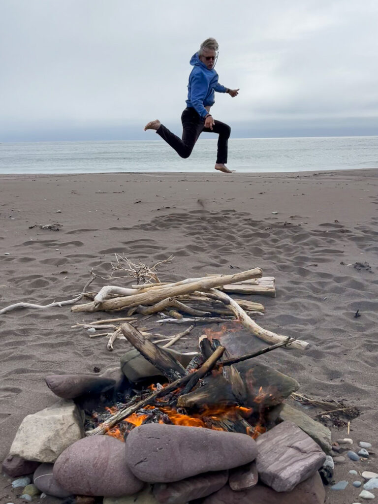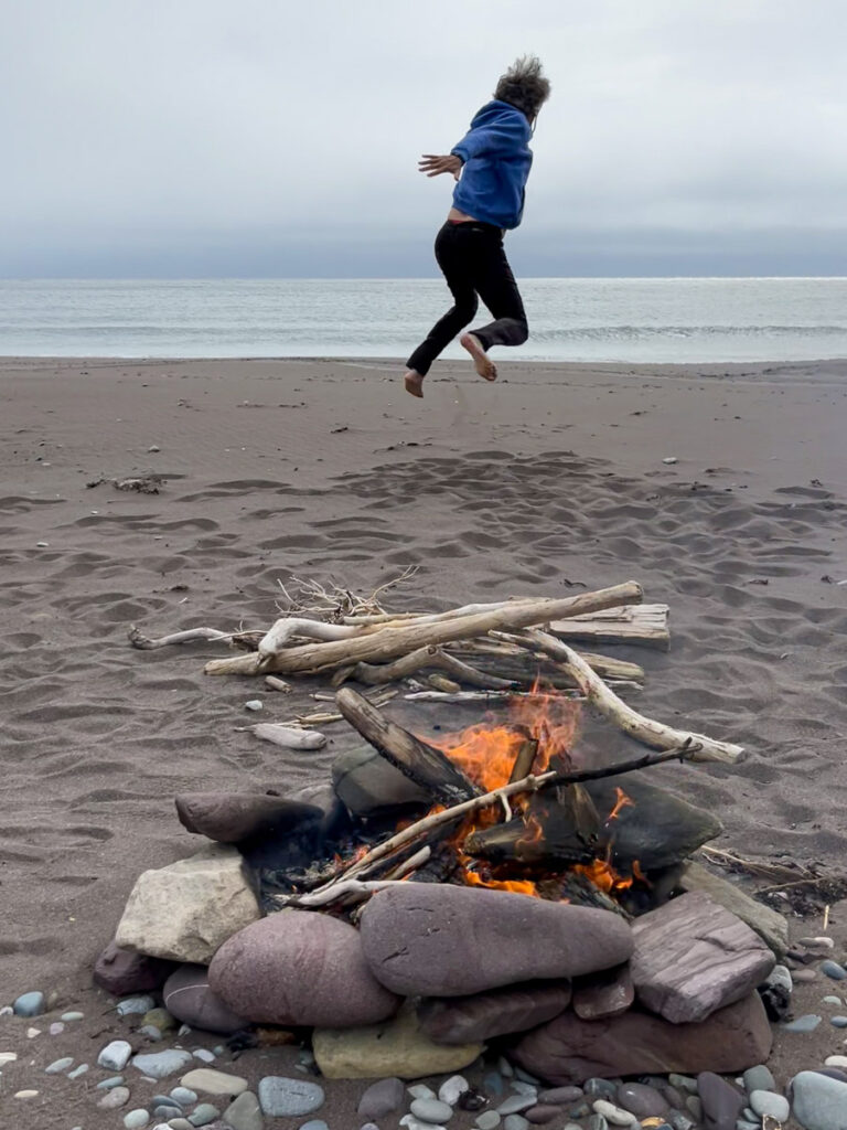 On se la coule douce, petites marches sur la plage, 4 heures de feu de grève, apéros, on sent l’érable, la vanlife à son meilleur…