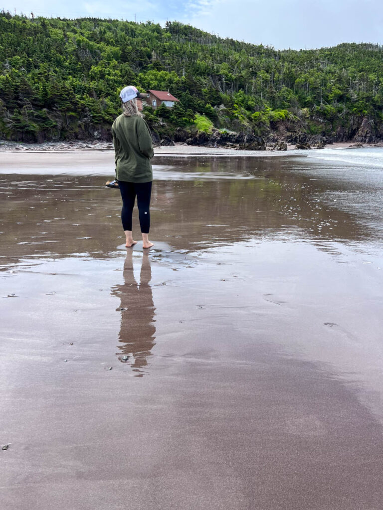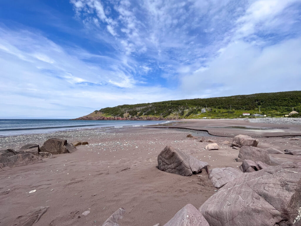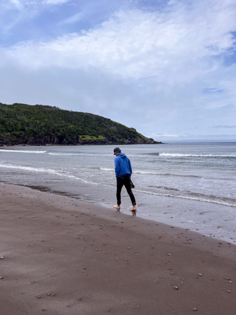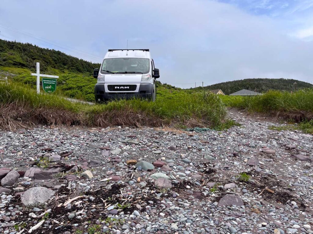 Le brouillard décide d’arriver en descendant à Branch. Mais il est très épais ce brouillard. On ne voulait pas aller à Ste-Mary’s ecological réserve, ben on veut encore moins. On regarde les endroits sur le bord de le mer, qui n’a pas de brume, et qui est le plus près possible de Placentia. On voit un spot, fantastique à Gooseberry. On descend à pied, pour voir l’état de la route, et c’est ici qu’on se pose, pour une dernière fois. C’est le paradis. Nous sommes seuls. Un peu plus tard, un autre véhicule de la Nouvelle Écosse est venu se poser. Il bloquait le chemin, ça n’a pas été long qu’il s’est fait avertir. Des locaux viennent marcher sur la plage, des enfants viennent jouer et se baigner. C’est très zen comme endroit, et comme à l’habitue, les gens sont respectueux. Honnêtement, c’est ici que j’aurais ma maison, si…