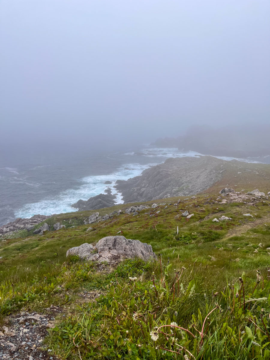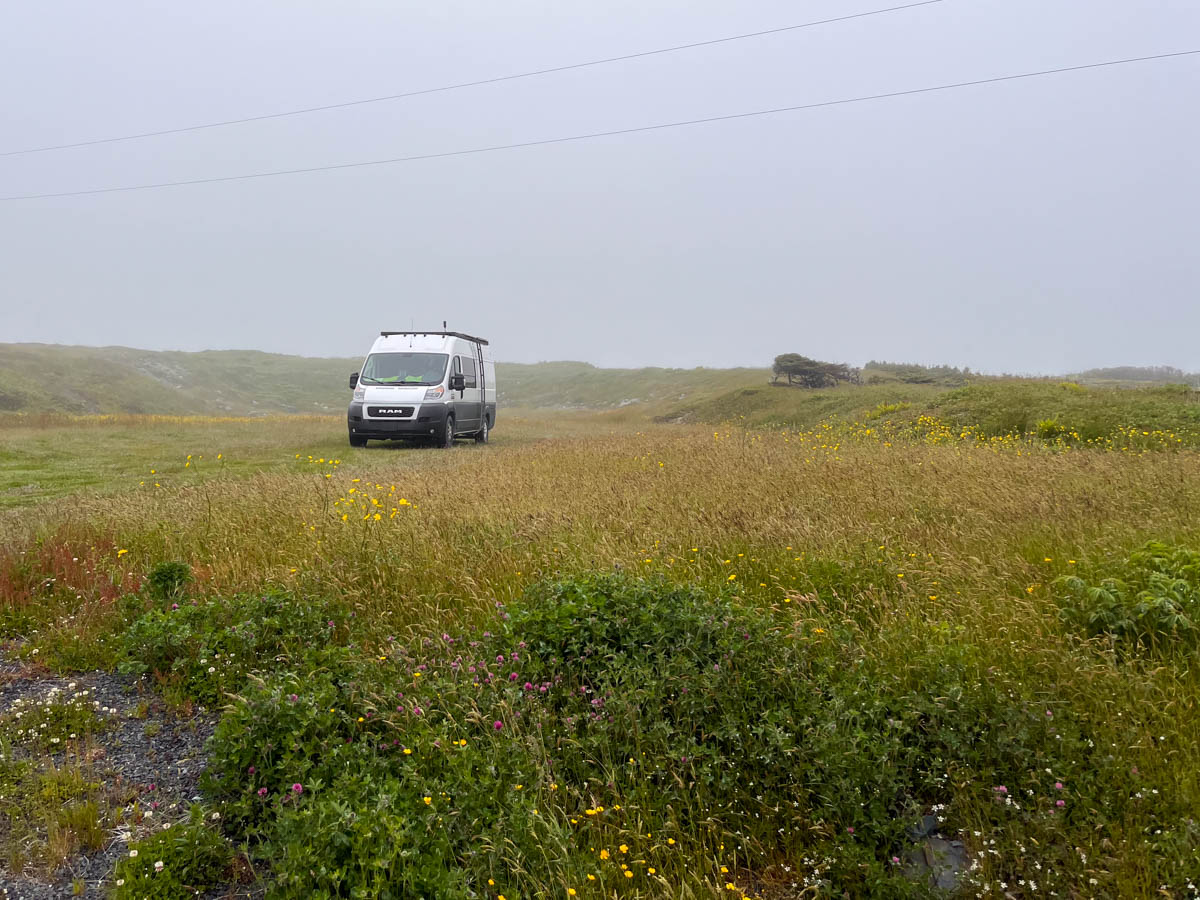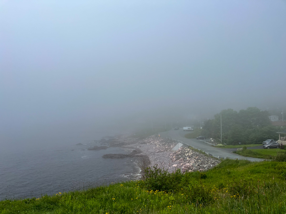 D’où nous sommes, on voit la brume au niveau de la mer. Cape Spear devra finalement se passer de nous. Ça m’attriste un peu, mon rêve aurait été d’y passer une nuit pour avoir les premières lueurs du jour de toute l’Amérique. Ce sera pour une prochaine fois. On revient à la maison, et on s’attaque à différentes choses. Dont terminer le blog de la semaine, faire du lavage et se préparer pour le dernier stretch.