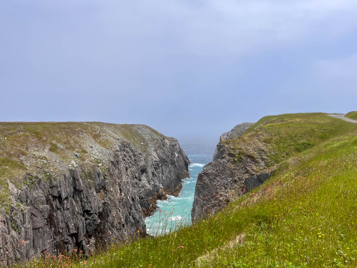 La première ne sera pas très loin, elle se nomme Petty Harbour. On s’y rend toujours pour les mêmes raisons, les sentiers. On refait un autre bout de la East Coast Trail, cette section se nomme Cape Spear Path, Maddox Cove to Herring Cove. Le stationnement est près du coin de la rue. Il ne faut pas faire la même gaffe que nous, et s’aventurer dans un cul de sac.