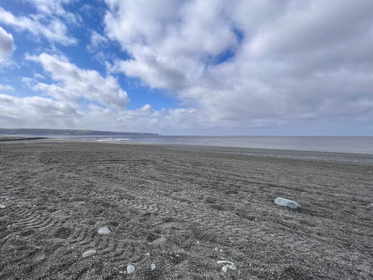 On arrive tout de même assez tôt et on rencontre une famille de 4, en Westfalia. Super gentils, explorateurs, débrouillards; ils parcourent la province en 5 jours. Ils mangent de l’asphalte. Les enfants sont curieux, ils vont revenir. On espère voir ces animaux avec eux, mais le brouillard ne veut pas. Avec nos jumelles ils réussissent à voir quelques macareux en vol, et c’est tout. Dommage.