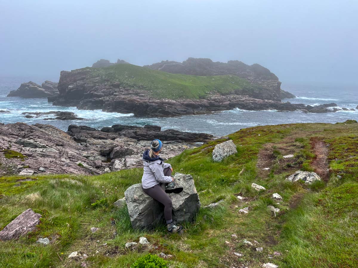 On va faire un petit bout de chemin. Il est possible de voir des fossiles à Mistaken Point. Ann et Louis nous avaient mentionnés que pour marcher sur les fossiles, il faut retirer ses souliers. J’ai hâte de voir ça.