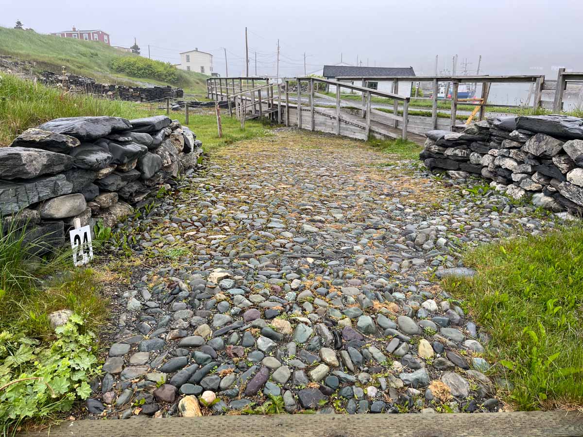 Prochain arrêt, Ferryland (premier établissement permanent sur Terre-Neuve, fondé en 1621). Ce village se nommait aussi Forillon lorsqu’il appartenait au Français. Il y a des fouilles archéologiques près de l’accueil des visiteurs, et on peut fouler les pierres qui servaient de chemin il y a plus de 400 ans. Beaucoup d’artefacts à voir. Nous n’avons pas pris le tour guidé, donc ce que nous savons se limite aux panneaux d’interprétation retrouvés à certains endroits.