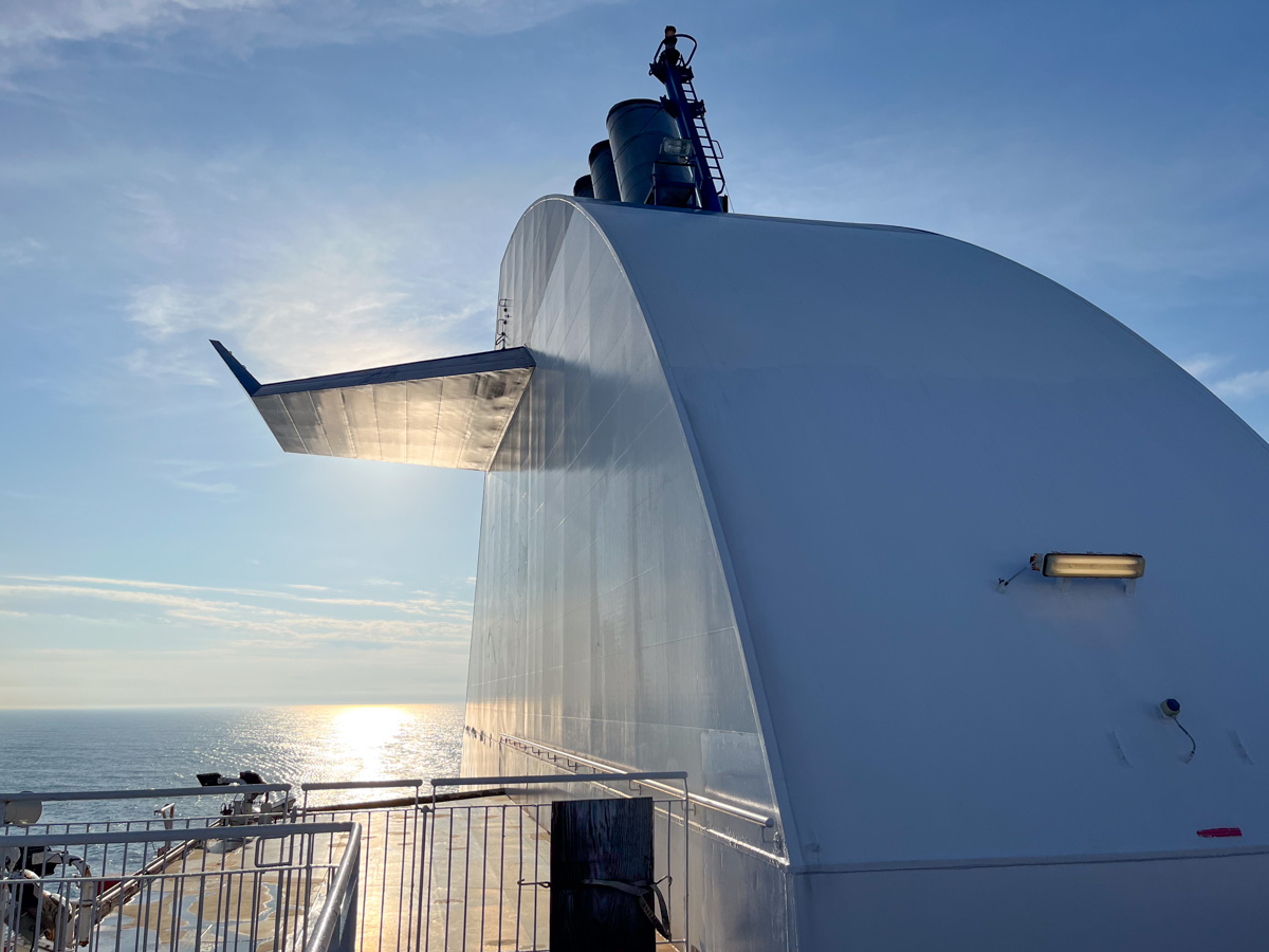 Lendemain matin, 5:30 nous sommes réveillés, il n’y a plus de corne de brume, mais un beau levé du jour. C’est fou comme l’arrêt d’un bruit nous réveille autant que le début de bruit.