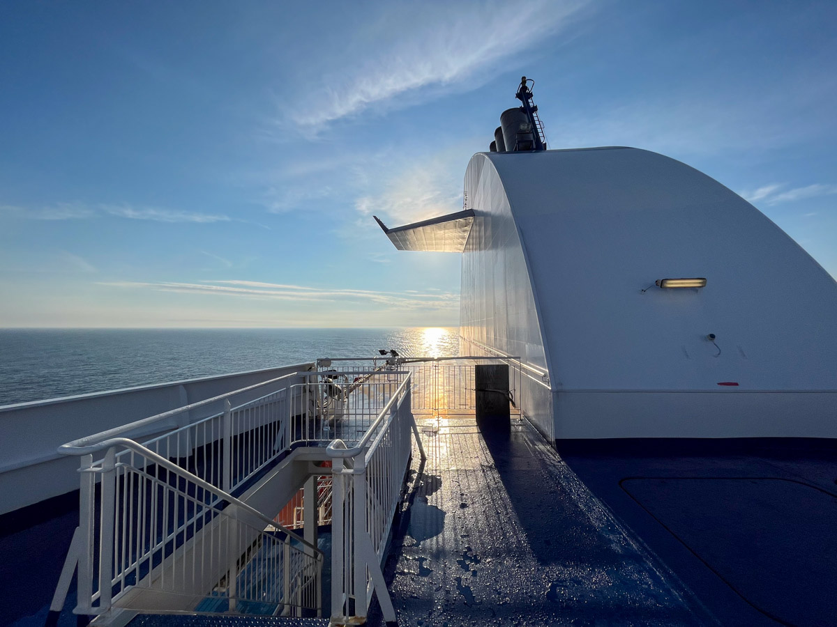 L’embarquement débute vers les 16:00. Il n’y a que 2 camions. Cette route n’est pas privilégiée par le transport. J’ai même vu des rabais offerts aux transporteurs s’ils prenaient ce traversier. Le départ prévu à 17:00 est même devancé. On part à 16:45.