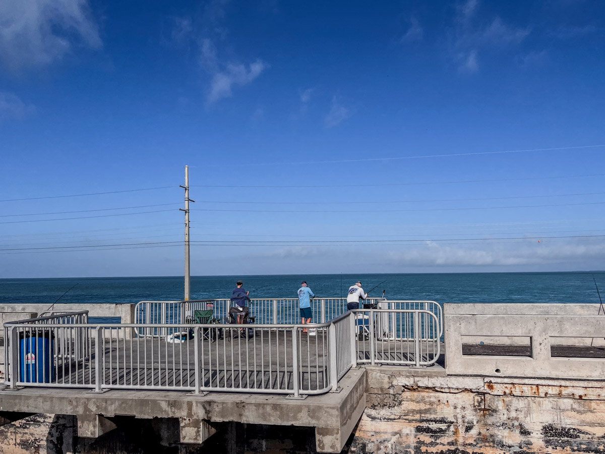 Prochain arrêt, mise à part l’épicerie, sera au Key Largo Fisheries. En passant, il y a un long, très long pont qui relie Key West aux autres îles, il se nomme : 7 mile bridge. Nous allions au Winn Dixie, qui était à 10 milles de l’endroit où nous étions. On a remarqué, lors de l’allée, qu’il était en effet long, mais on ne pensait jamais qu’il était réellement de cette longueur. L’autre bord du pont il ne restait que 3 milles pour le Winn-Dixie. Un autre point concernant les ponts. Il y a beaucoup de pont piétonniers à côté des ponts ou circulent les véhicules. Ceux-ci permettent aux gens d’y pêcher. C’est vraiment génial.