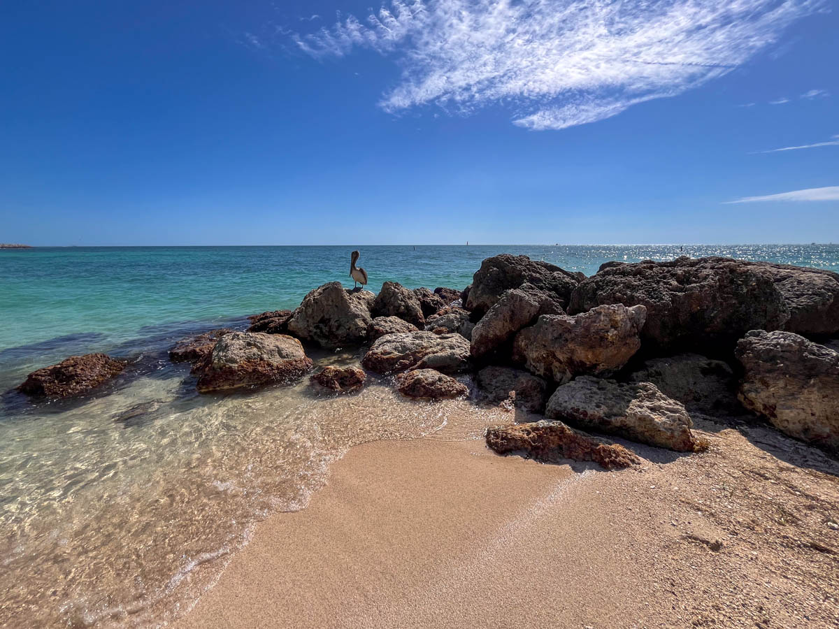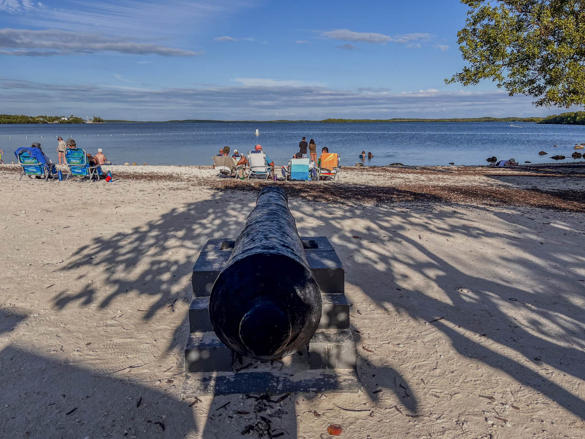 La route est longue, pas tant pour la distance, mais le fait que nous soyons dimanche, et qu’il n’y a qu’une seule voie, et que ça ne roule pas souvent à la vitesse permise. Contrairement à ce que nous sommes habitués, c’est toujours beaucoup en dessous de la limite de vitesse permise. On trouve donc le temps assez long. De plus, la route est loin d’être celle que je m’attendais à ce qu’elle soit. On ne voit pas souvent l’eau mise à part les fois qu’on traverse les ponts. Quand on regarde sur la carte, ça a l’air tellement étroit mais finalement c’est large et sur le bord de l’eau il y a régulièrement des grosses maisons ou des Resorts. Notre destination finale à Key West sera le Fort Zachary Taylor Historic State Park. En fait, on va surtout là pour la plage qui semble assez belle merci.