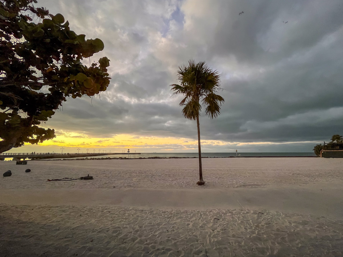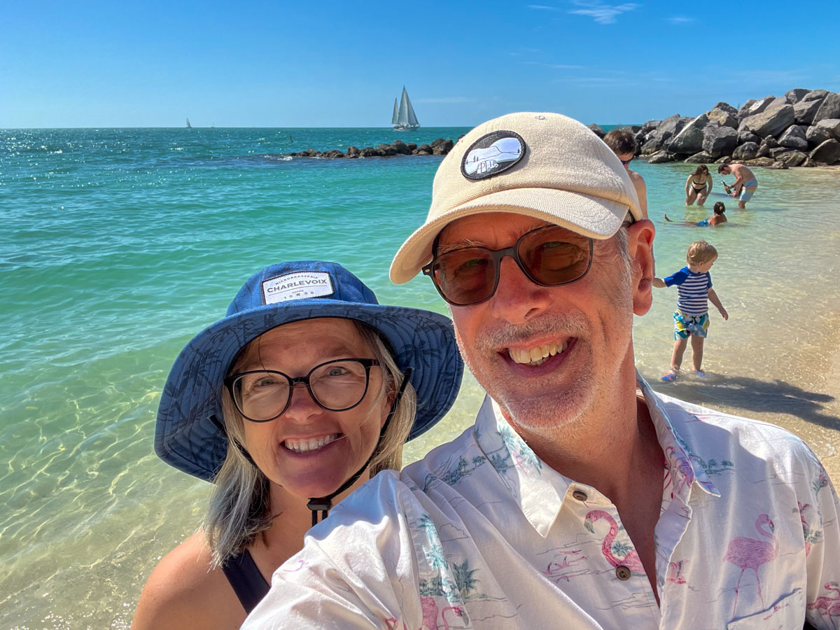C’est beau Key West, la vieille ville, les vieilles maisons, les rues étroites, on adore. Les rues sont très étroites, par chance on ne retrouve pas de VR, ou de roulotte. Je me demande sérieusement comment ils feraient pour tourner certains coin de rues. On y retrouve par contre plusieurs vans. Dans le stationnement du parc, autour de nous, il y a facilement une quinzaine de vans. On va à l’extérieur faire une première reconnaissance, on retourne chercher nos effets personnels et à la plage. L’eau est belle c’est vraiment le fun, on en profite pour se baigner. Juste pour être taquins on décide d’appeler nos amis qui seront avec nous dans une semaine en Floride, pour leur montrer ce qu’ils ratent. À peine terminé notre FaceTime, le vent se lève, le ciel est noir, la plage se vide complètement. On espère que le ciel ne nous tombera pas sur la tête.