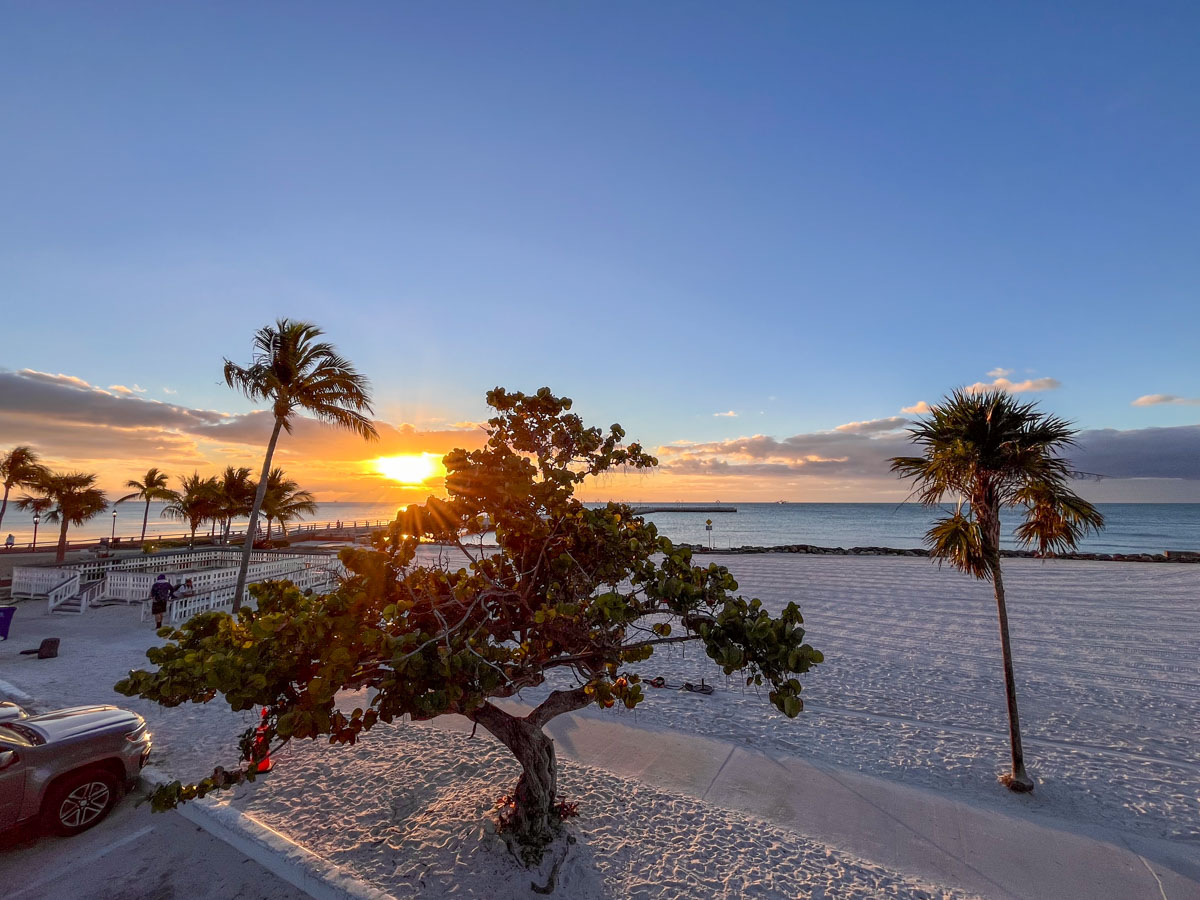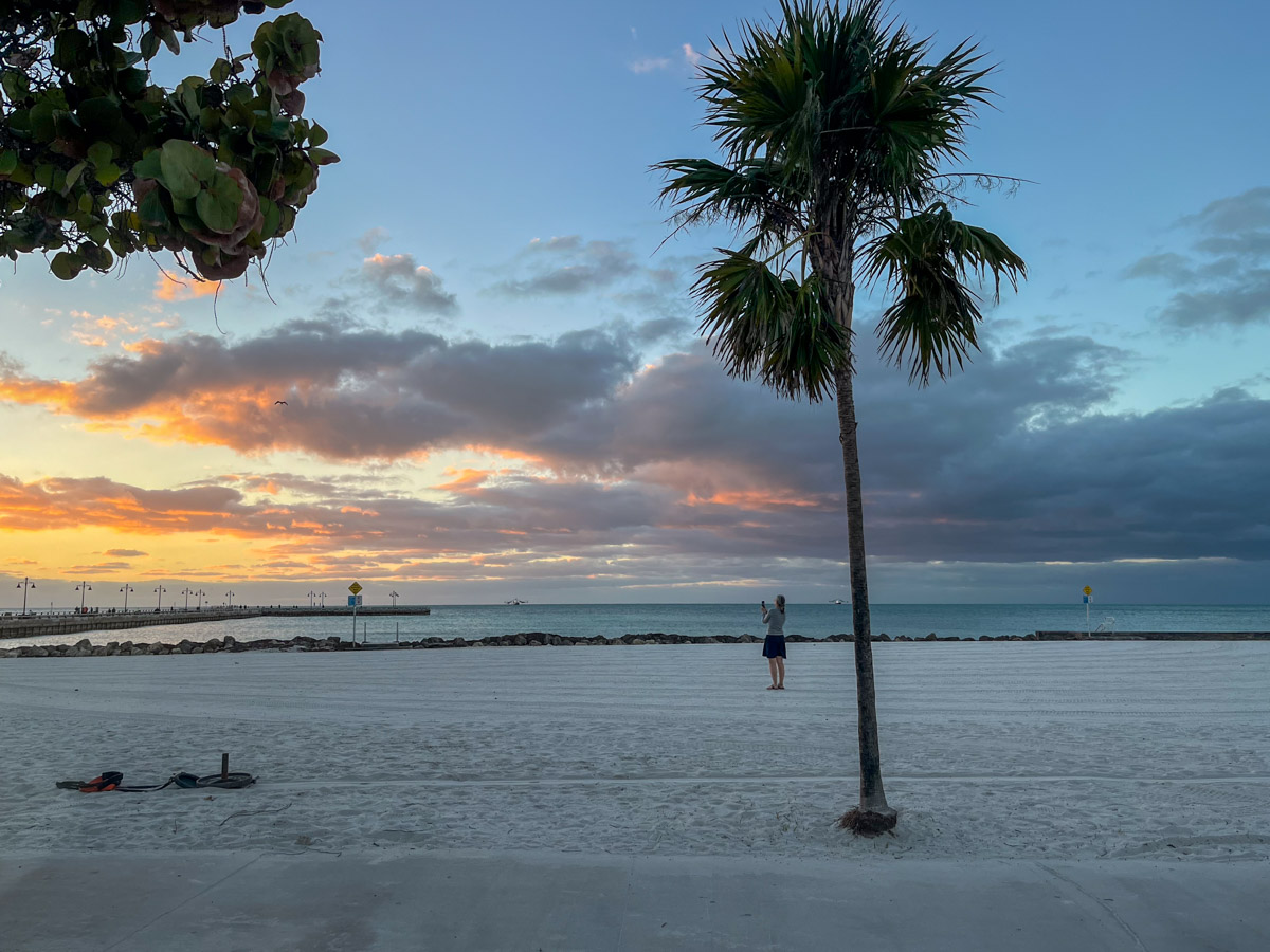 On parle avec des gens, on nous recommande fortement d’aller à un autre endroit qui est gratuit. On vérifie avec nos amis Louis, Martine et Sylvain quel serait le meilleur endroit pour se poser pour la nuit. Faut comprendre que Key West n’est malheureusement pas très VanLife friendly. On nous conseille d’arriver après 17 heures dans un stationnement payant, ou d’aller dans une plage gratuite jusqu’à 23 heures, avant de se trouver une place pour dormir. On compte bien aller se taper un repas sur la rue Duval