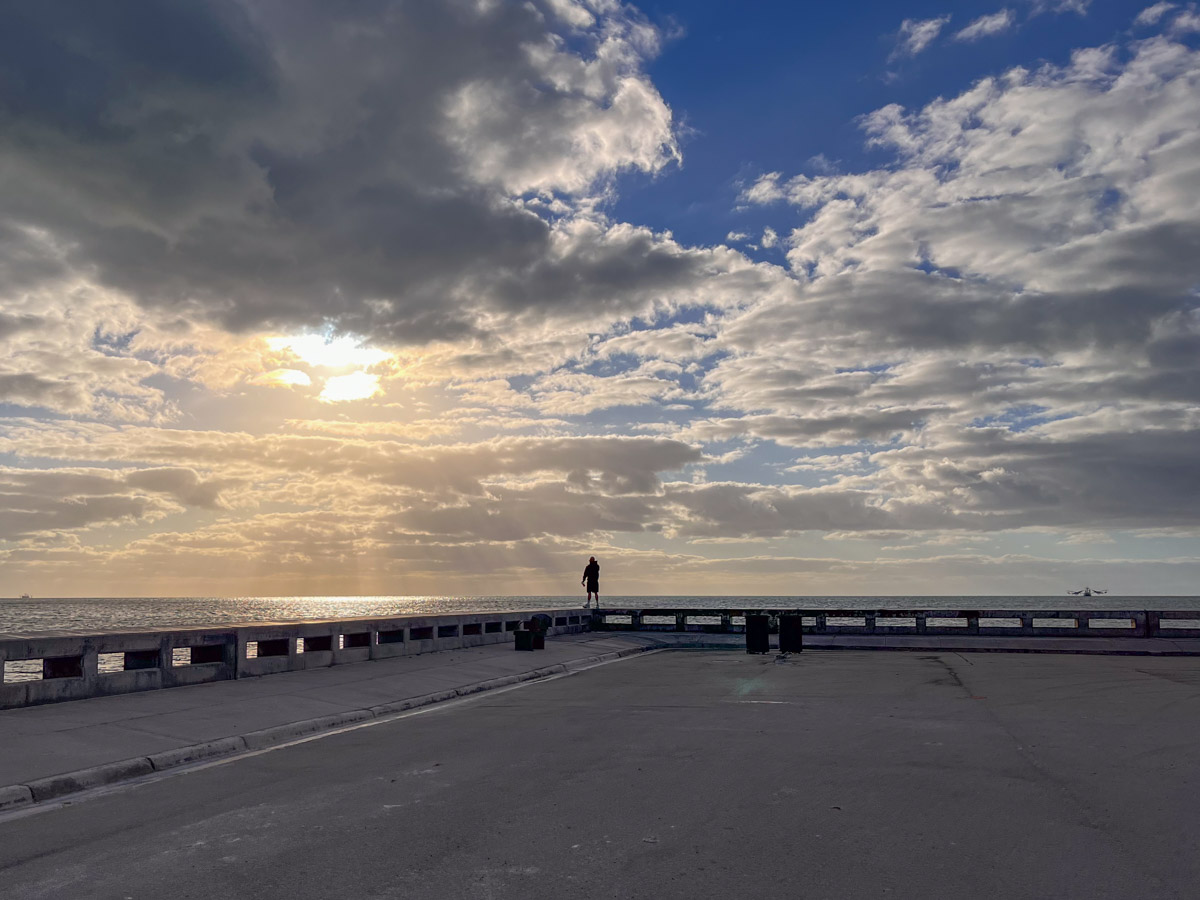 Étant donné qu’on peut retourner sur la plage à 6h du matin donc à 6h15 nous sommes sur le bord de la plage en train de se faire un petit déjeuner en attendant le lever du soleil. On ira faire une petite marche sur la plage et on quitte pour se rendre à Key Largo. Est-ce que la ville va nous manquer, pas tellement, ce n’est pas très accueillant si tu ne loues pas une maison ou un resort dans la ville. Mais ce qui va nous manquer c’est la chaleur car un front froid est arrivé. On passe du 28 au 18, toute une différence.