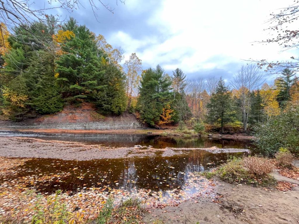 Ensuite, on va marcher un peu, on fait le sentier numéro 4, celui que nous avions fait jeudi. On avait vu le niveau d’eau à la chute, mais pas ailleurs. Certaines plages ont disparu.