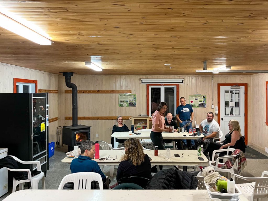 On va ensuite tous souper ensemble dans la salle communautaire. Il y a déjà une tablée d’autres campeurs. L’ambiance est “festive” (ouain, le mot que j’adore).