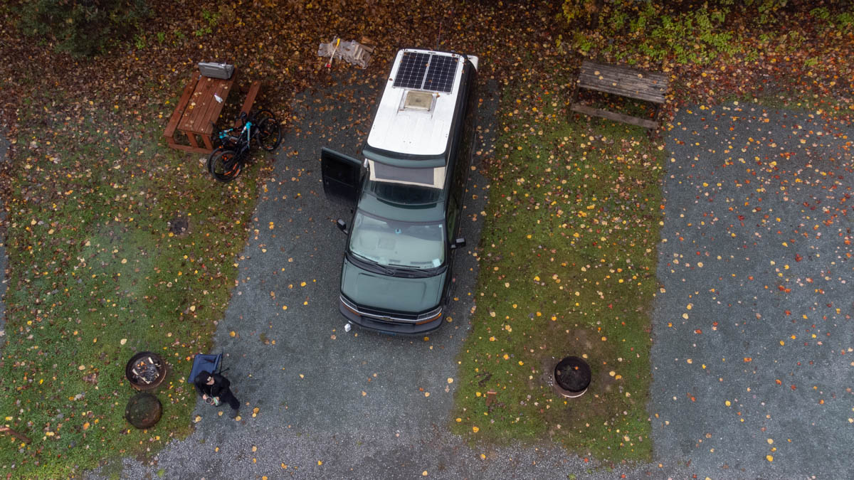 On a décidé d’arriver une journée à l’avance. Ça fait plusieurs jours qu’on ne s’est pas posé, pas d’électricité, plein de lavage à faire, besoin de douches, et il va pleuvoir demain. Tout aussi bien d’en profiter.