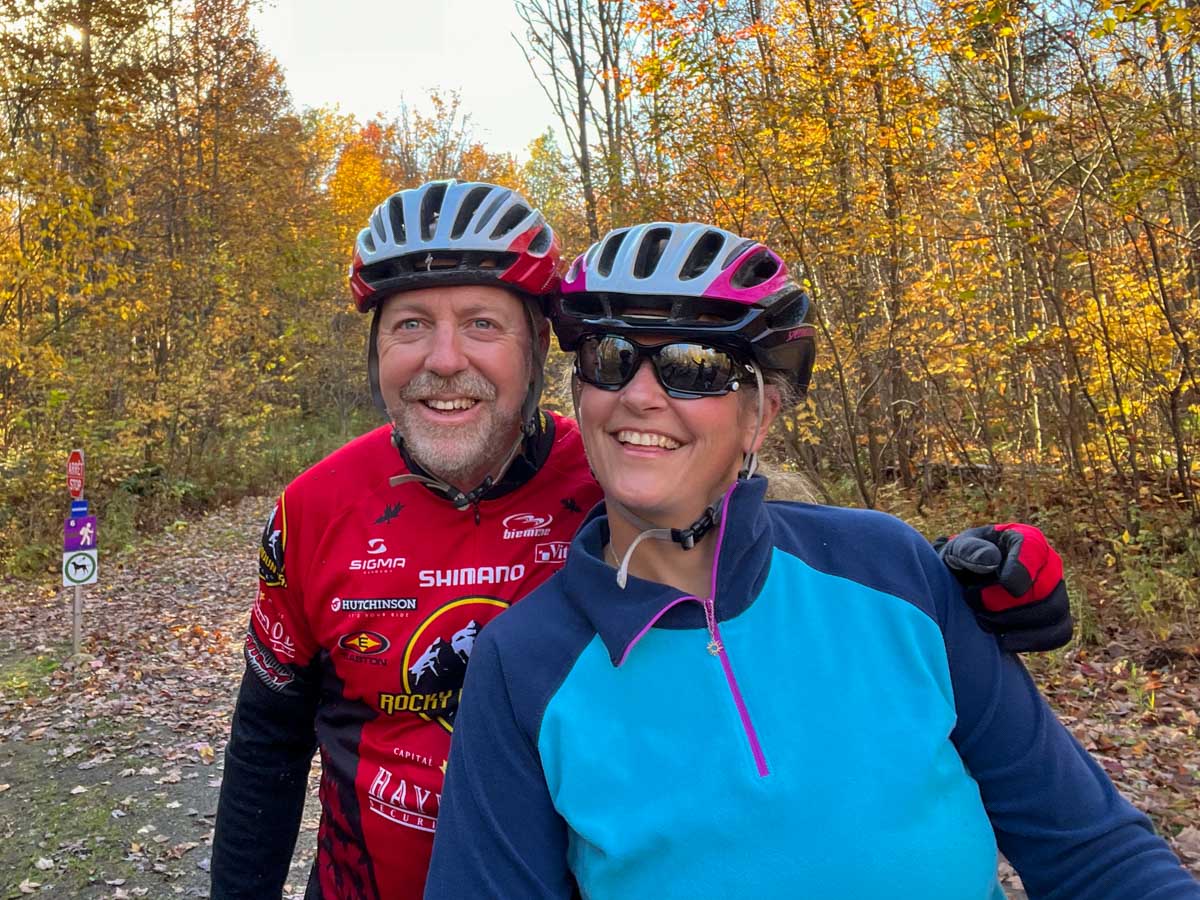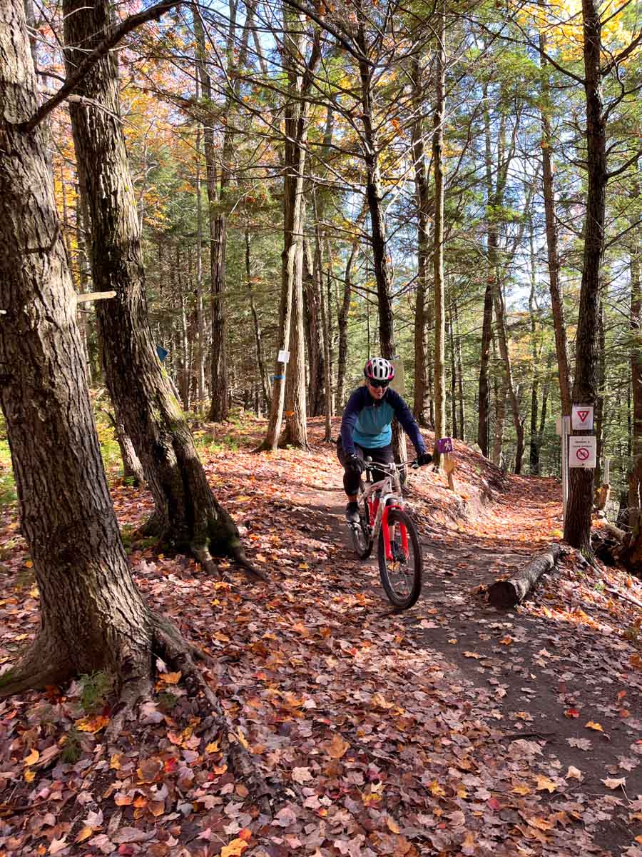 Comme si ce n’était pas assez, on fait ensuite 10km de vélo de montage. Pascale et Martin en ont loué, Natacha et Gabriel ont emprunté, sans permission, ceux de leur gars, Martine et Alain ainsi que nous, avions les nôtres. C’était super le fun, Gabriel, la machine, a épaté la galerie. Louise ne s’est pas petté la fiole. C’est déjà ça. Eric, Martine et Louis n’étaient pas avec nous, quoique Martine à Louis a emprunté le vélo de Martine (à Alain) pour l’essayer. Elle a adoré, elle ne voulait plus lui remettre son bicycle.