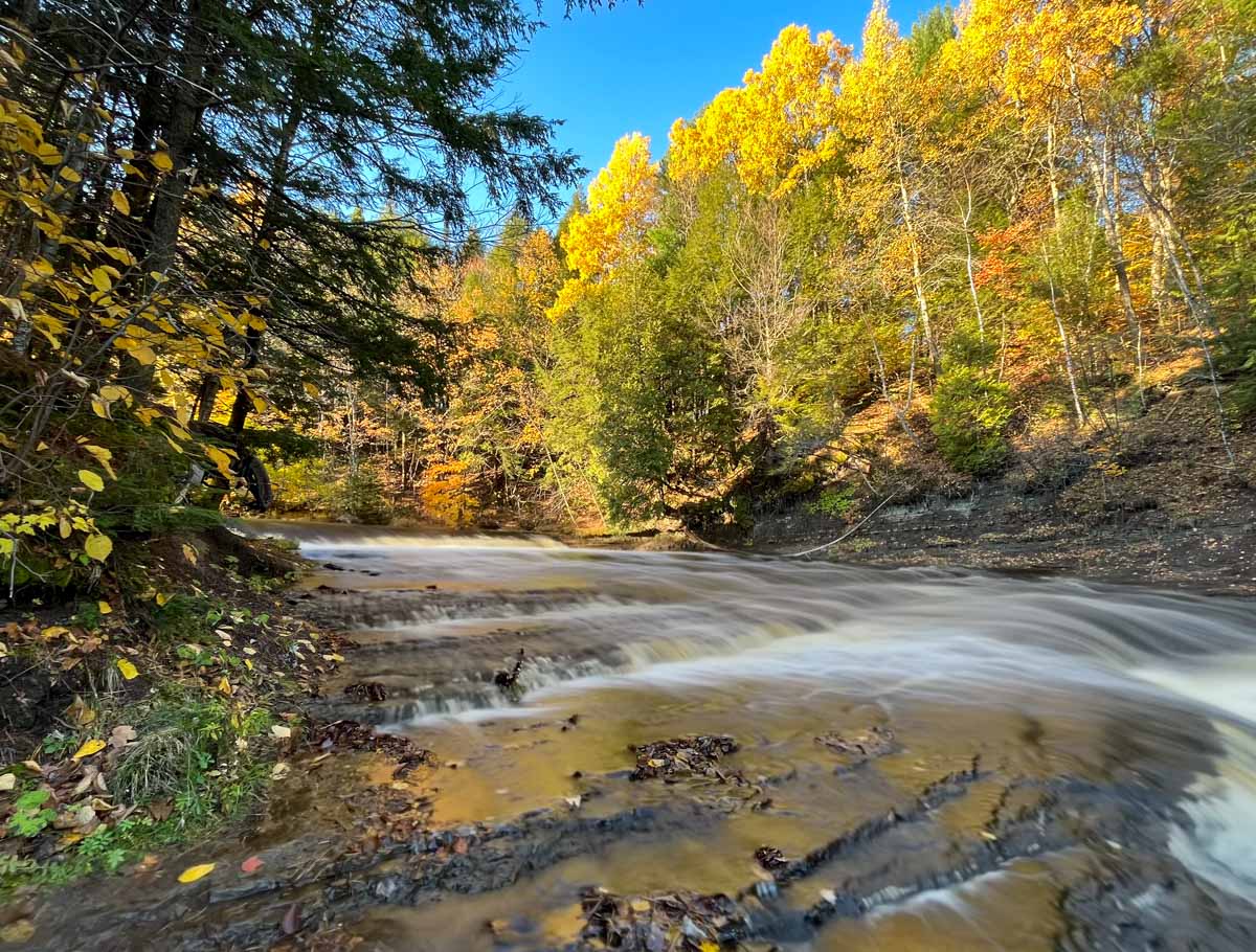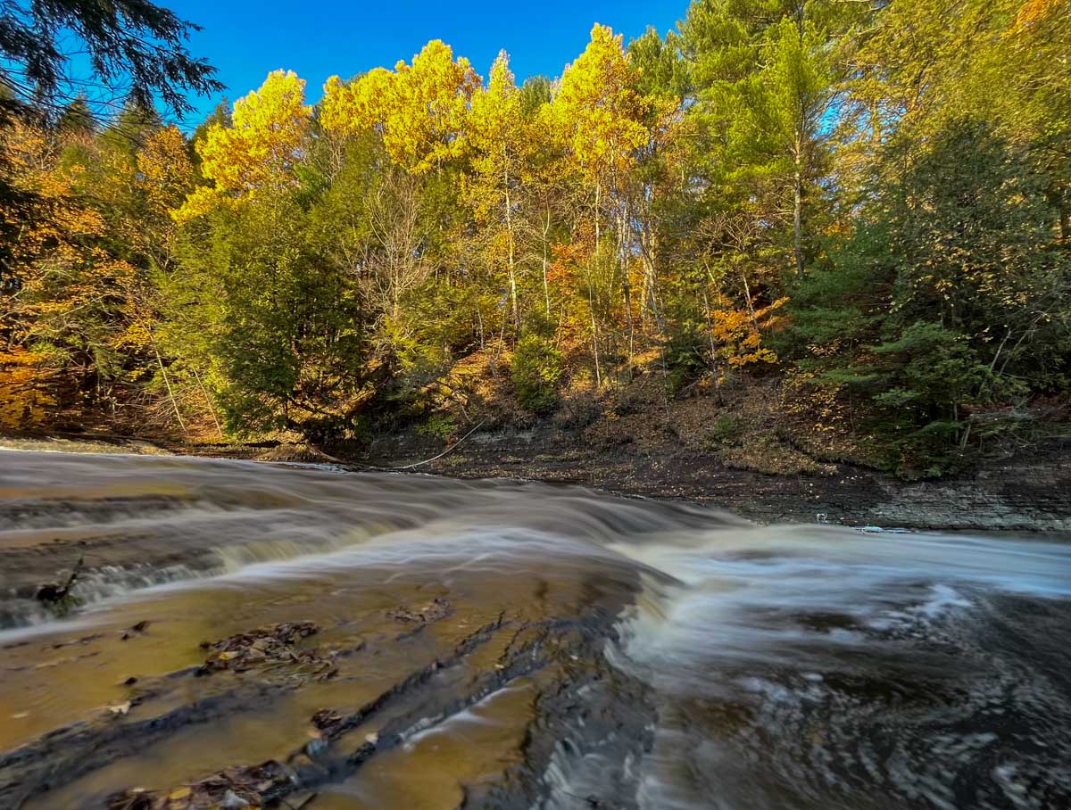 Ensuite, on va marcher un peu, on fait le sentier numéro 4, celui que nous avions fait jeudi. On avait vu le niveau d’eau à la chute, mais pas ailleurs. Certaines plages ont disparu.