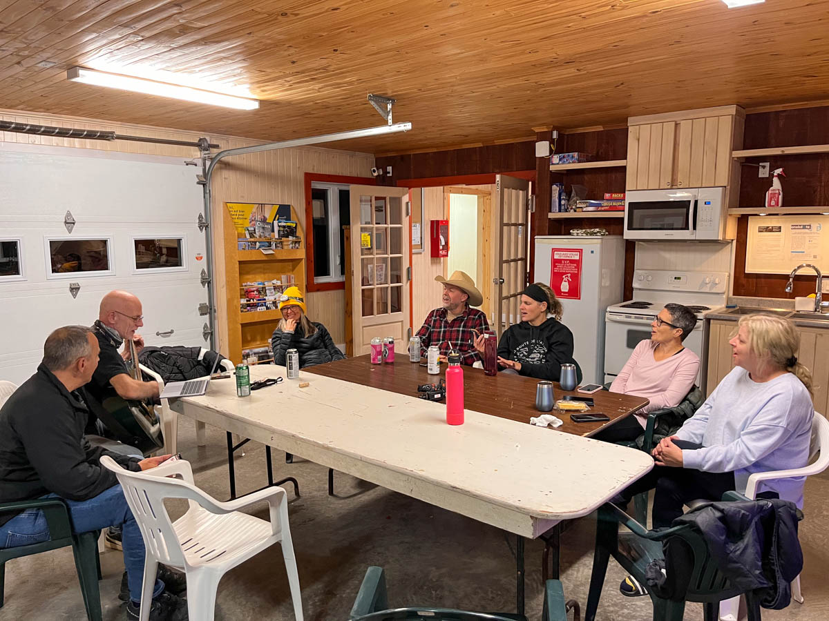 Alain a un nouveau logiciel et il peut suivre les paroles et les accords live. Et il trouve plein de chansons. C’est tellement le fun d’avoir un chansonnier à nous, autour d’un feu ou pas. Les gens quittent peu à peu.