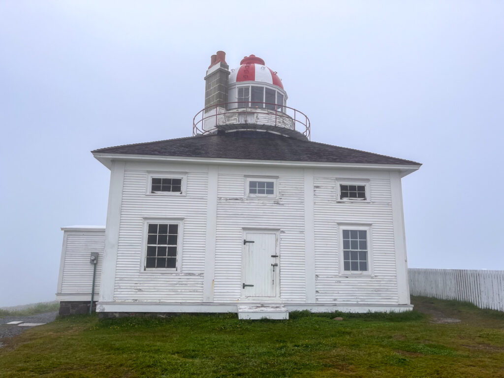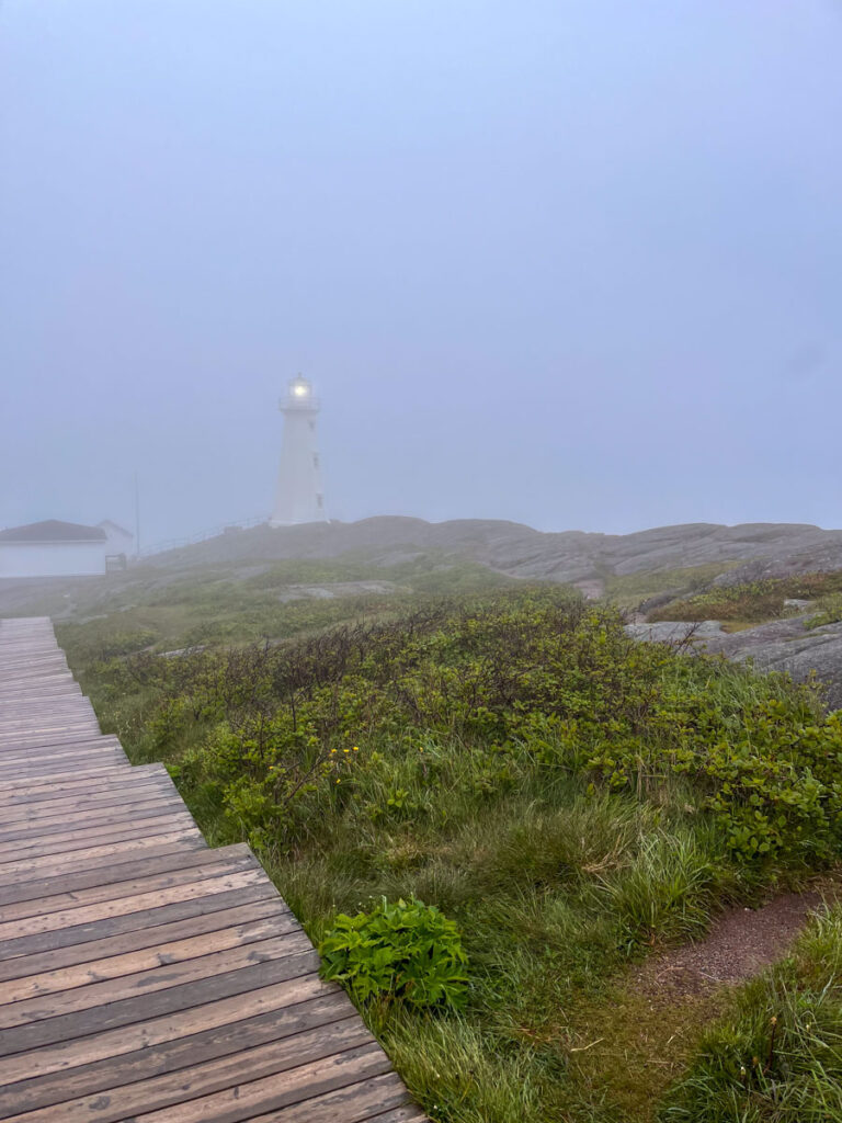 C’est l’heure de manger, c’est certain que la vue du stationnement n’est pas très adéquate. On regarde où on peut aller, sur le bord de l’eau, Cape Spear. C’est la destination. Ce cap est le point le plus à l’est du Canada. Lorsque tu t’y arrêtes, tu es au bout du Canada, point. C’est une grosse journée de brouillard et de froid, on ne fera pas de marche.