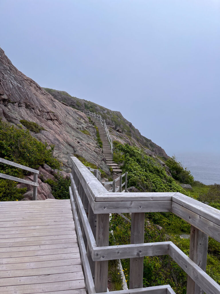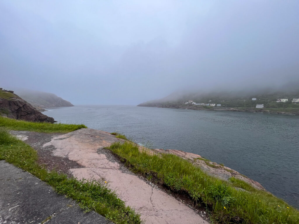On veut réellement faire une autre partie de la East Coast Trail, celle de Signal Hill (North Head). Hier nous n’avions que mangé dans le stationnement, donc rien visité, rien vu. Cette nuit et ce matin il a plu pas mal, alors on a décidé de prendre ça relax, et de partir plus tard. On remonte. Je commence à connaître la route, surtout les erreurs de Google. Étienne me racontait que les rues viennent du temps des chevaux, alors, il y a des intersections trompeuses. Il faut regarder attentivement le GPS, une petite erreur de rue, et c’est la catastrophe. Faire un demi-tour avec la van, dans les pentes, bonne chance.