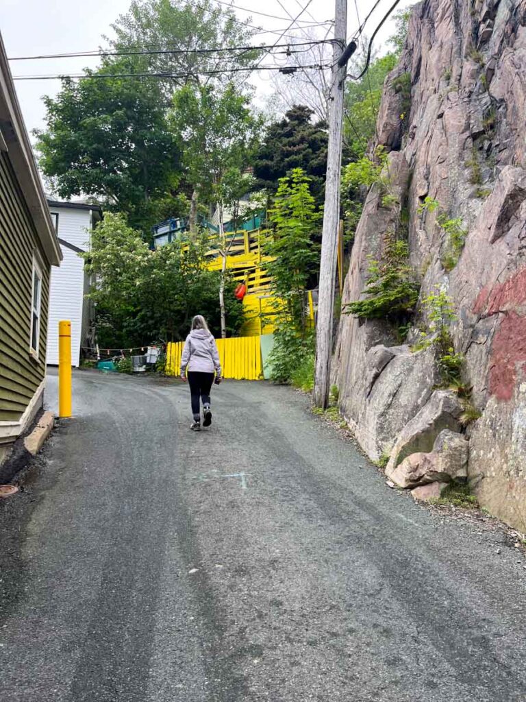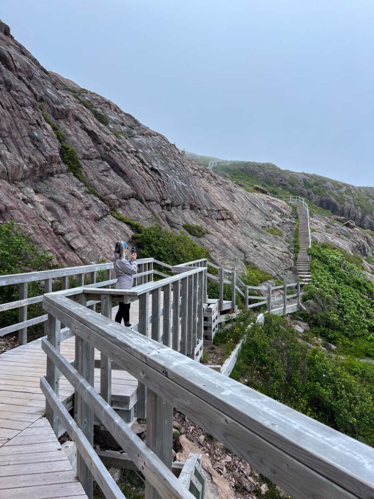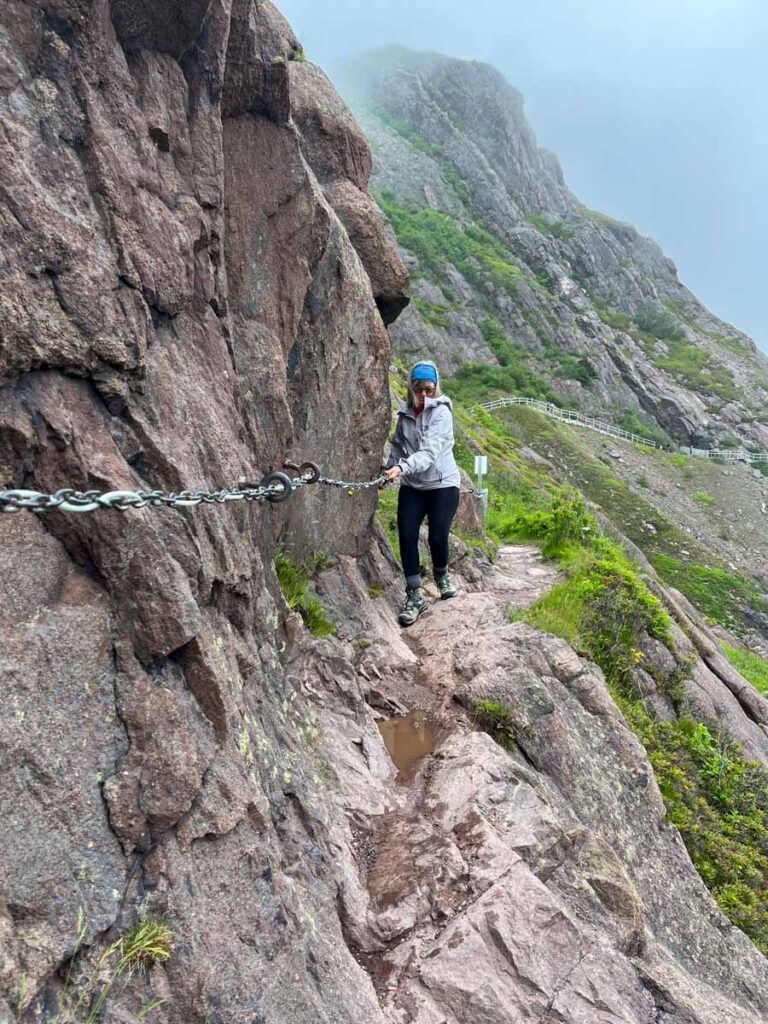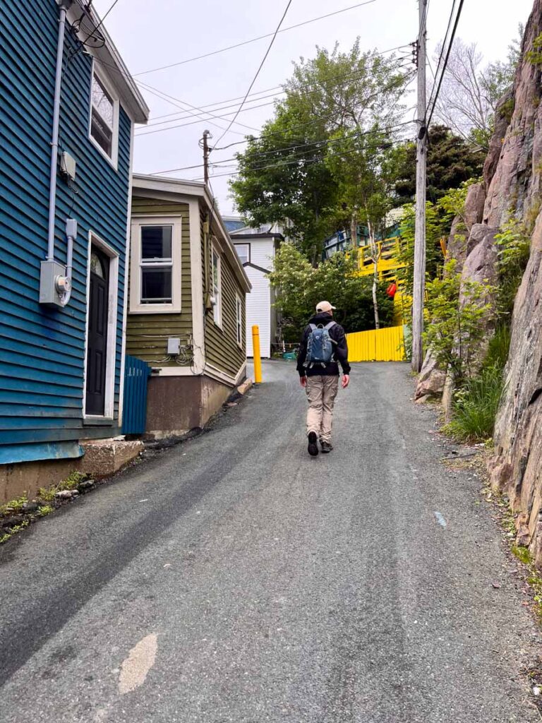 C’est un beau sentier, quand tu peux voir quelque chose. Lorsque le brouillard se dissipe un peu, pour quelques secondes, on a de belles vues. On voit les anciens bunkers, et on termine la première partie de la rando (après un falaise où il y a des chaînes pour s’y tenir) dans la ville. C’est tout simplement beau. On aime voir les petites, parfois grandes, maisons typique colorées. La rue se nomme Battery Road. NE PAS Y ALLER EN VAN car la rue est très très étroite et la pente très raide.