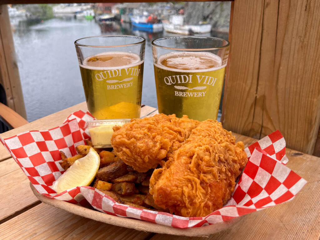 On termine la randonnée, et on va se prendre un bon repas à la microbrasserie Quidi Vidi. Contrairement à Dildo, c’est beaucoup plus pittoresque. C’est dans une baie, avec des maisons de pêcheurs tout autour. L’été le secteur devient piétonnier. On se stationne de l’autre coté du pont sur Cadet. On fait le chemin à pied.