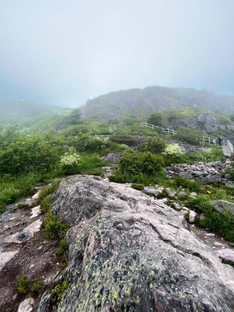 Ce sentier comporte BEAUCOUP de marches. Lors de notre première journée, on a vu qu’il y en avait énormément, mais il était impossible de l’évaluer. Dans l’application All Trail, le sens recommandé est horaire. On va suivre les recommandations. Finalement, il doit y en avoir 500 ou plus. Honnêtement, j’aime mieux monter une côte à partir de rochers que de monter des marches. Tant mieux.