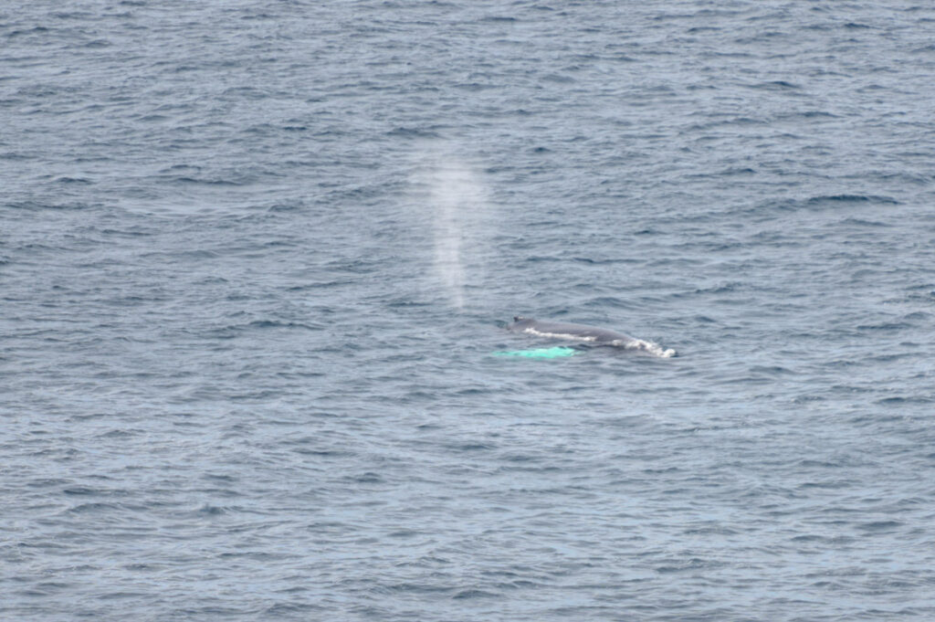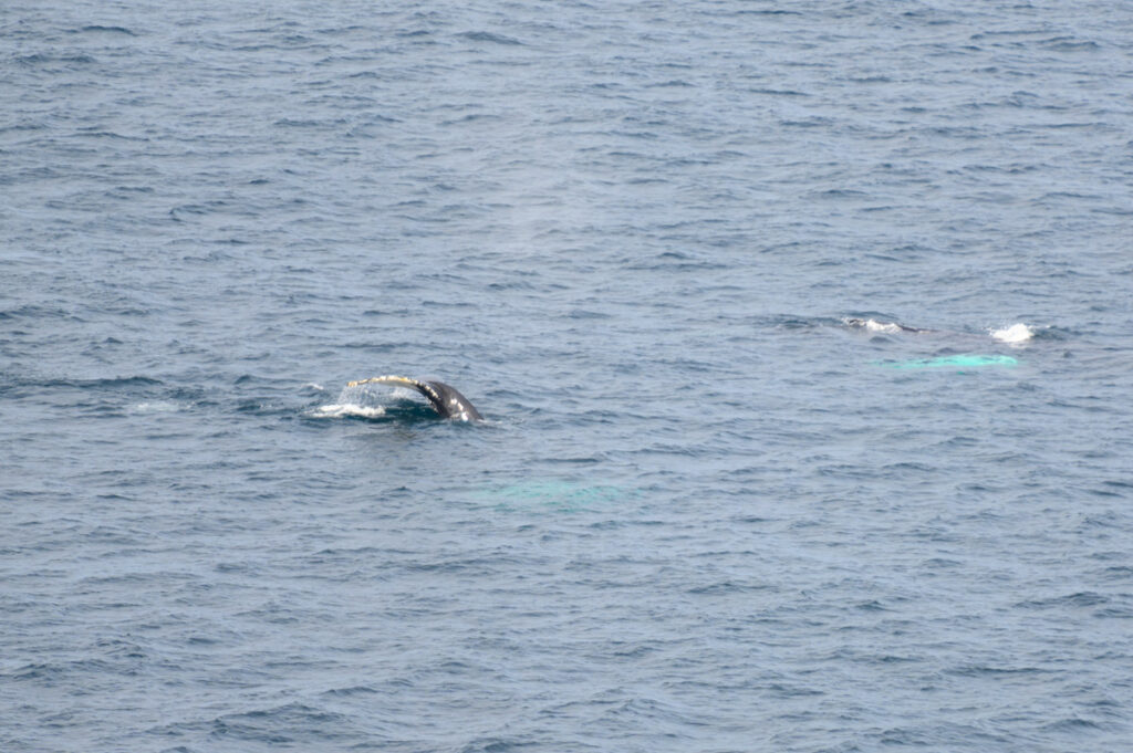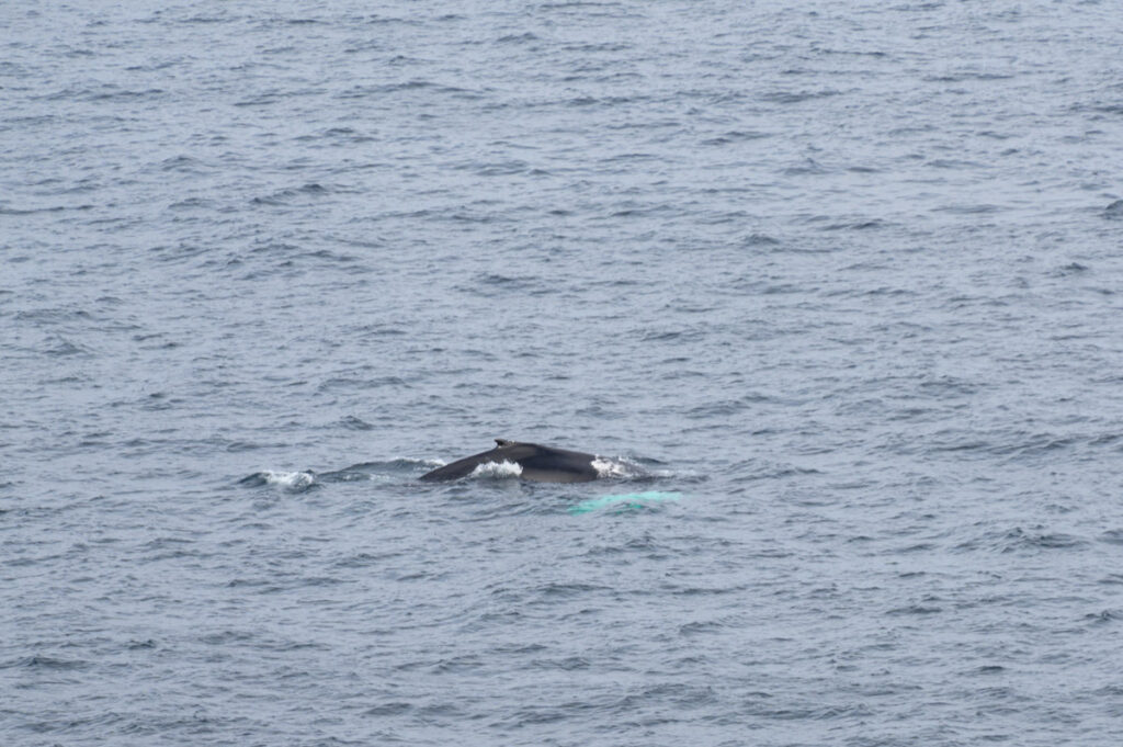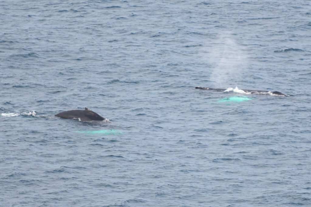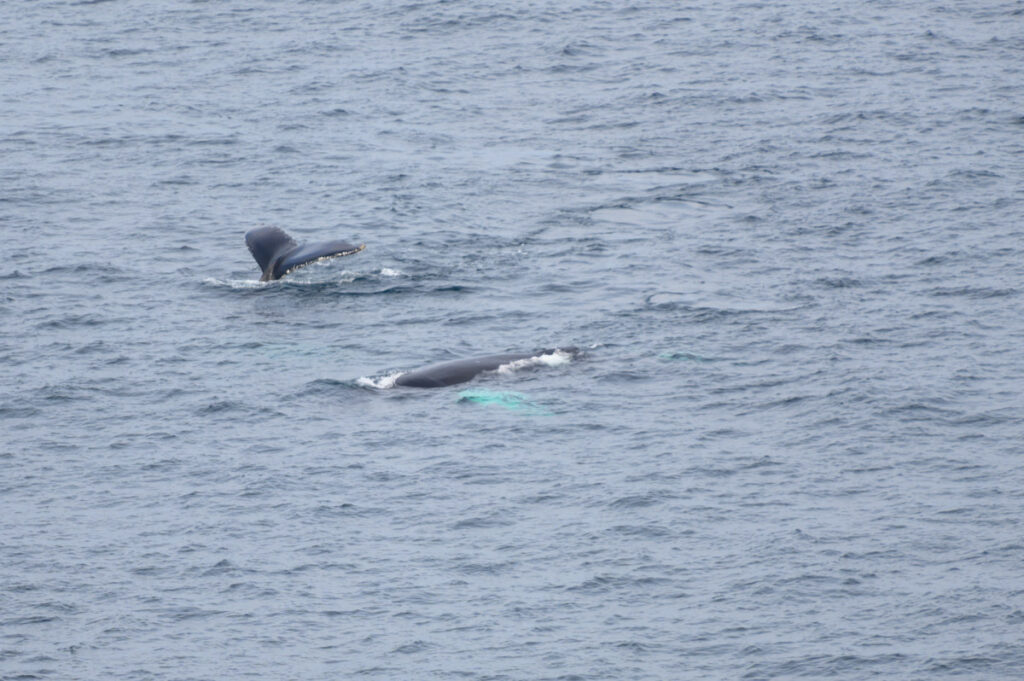 Revenons à leur localisation. Pendant que je discute avec les propriétaires, Louise cherche des baleines (les baleines à bosses). Si elles étaient à Cap St-Francis il y a quelques jours, elles ne doivent pas être bien loin maintenant.