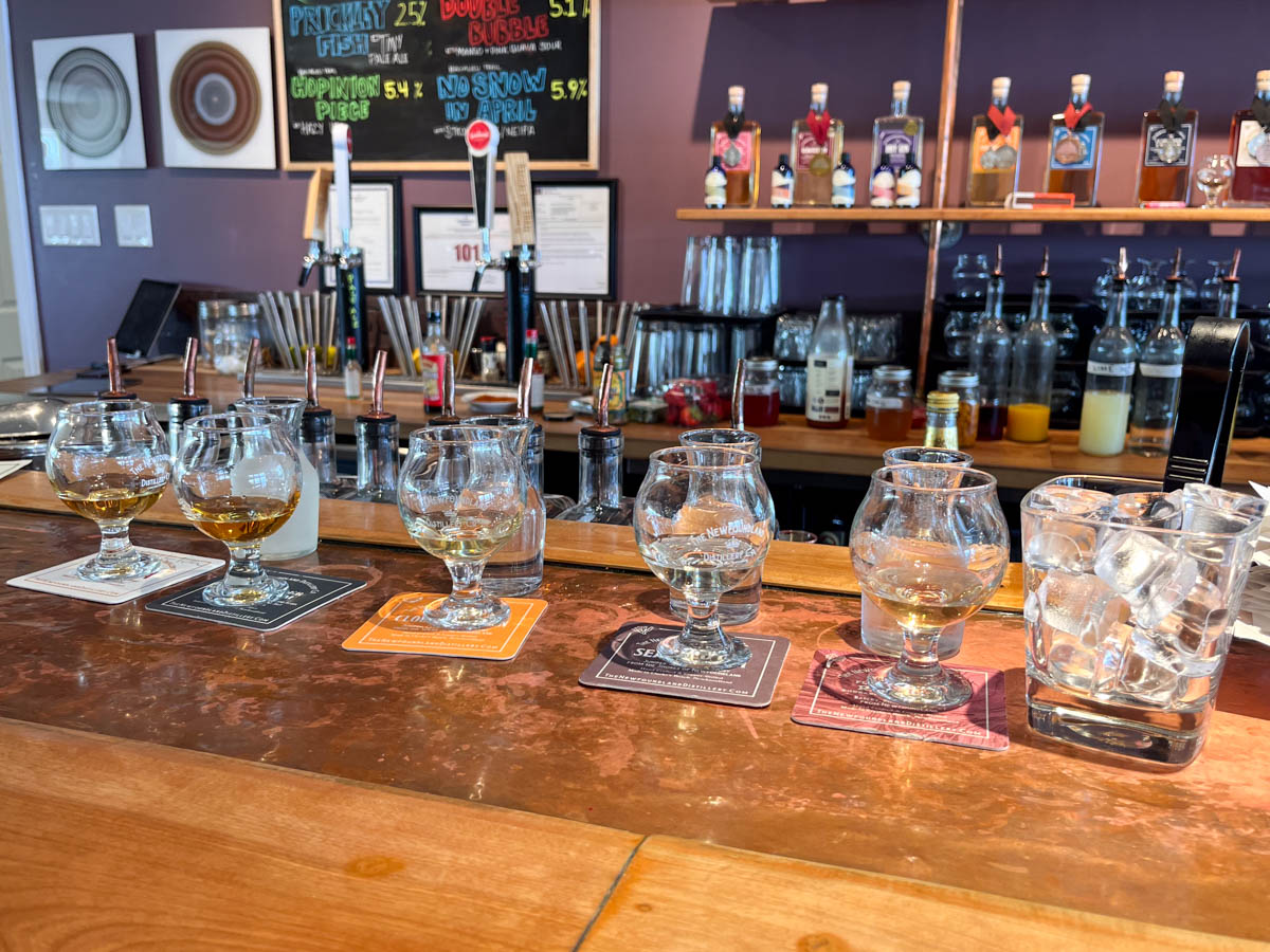 Troisième arrêt, on se rend à la Newfoundland Distillery Company. Si on désire faire l’essai des alcools, il faut se rendre du côté dégustation. Ce sera 5 breuvages : Vodka Rhubarbe, Gin Seaweed, Gin Sureau, Rhum poudre à canon et Rhum à l’érable. Ces alcools sont tous accompagnés de Tonic ou de Gingembre (le mix est excellent). On fait nos choix, Rhum à l’érable, et Gin Sureau. On oublie la poudre à canon, ça goûte la terre. Est-ce ça le goût de la poudre à canon?