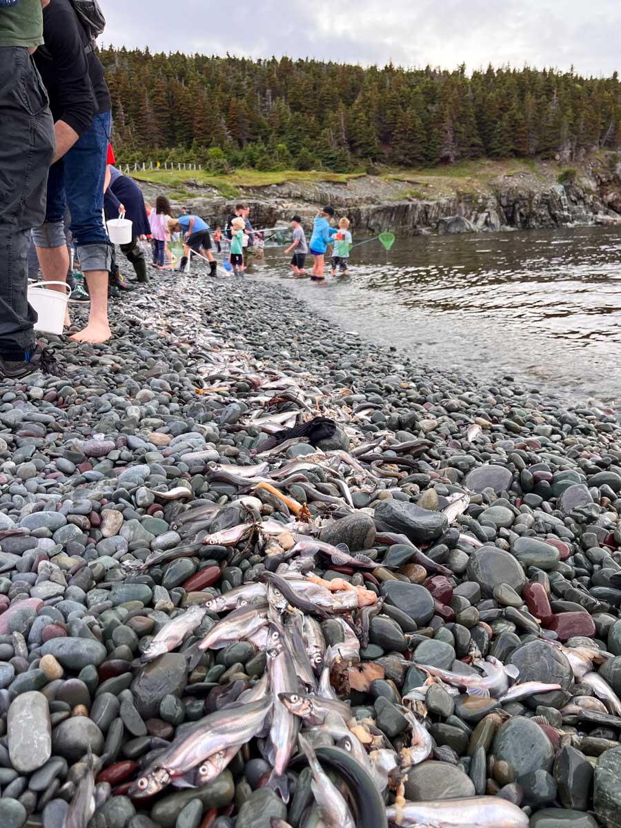La dernière nuit a été, exécrable. On ne s’y attendait pas, mais ce fût LE happening de St-John’s. La quantité de gens qui venaient et partaient, même en pleine nuit, était inimaginable. Le caplan n’est pas toujours disponible. Le poisson remonte vers l’Arctique pour se nourrir. Donc, en voir autant sur les berges, ce n’est qu’une question de hasard. Il n’y a pas de dates, ni d’heures. C’est l’heure de la terre.