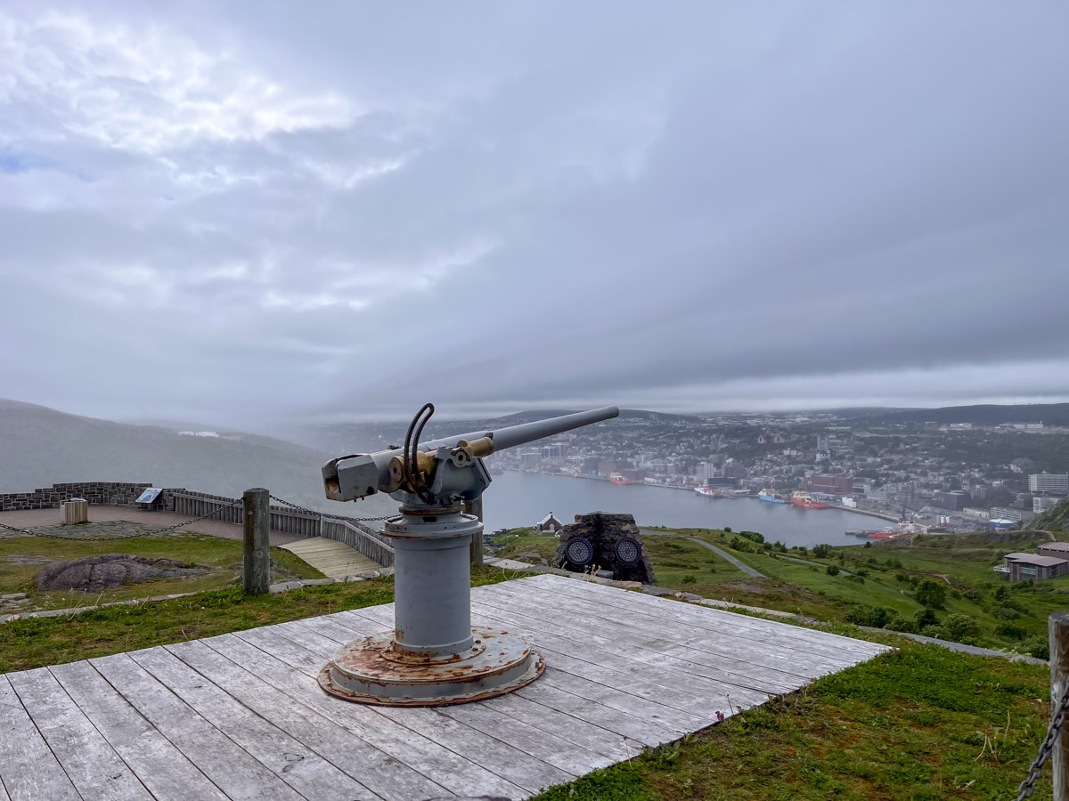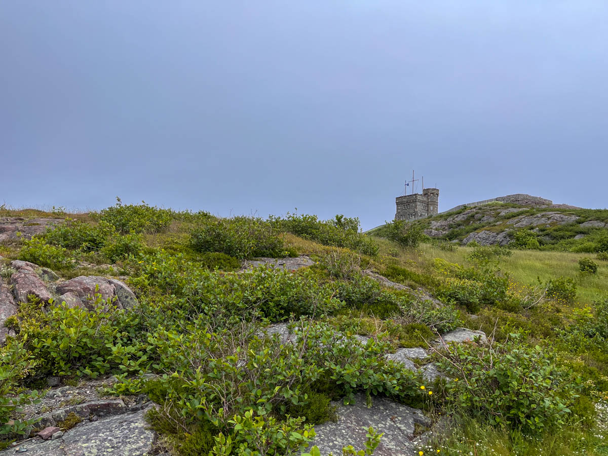 On veut réellement faire une autre partie de la East Coast Trail, celle de Signal Hill (North Head). Hier nous n’avions que mangé dans le stationnement, donc rien visité, rien vu. Cette nuit et ce matin il a plu pas mal, alors on a décidé de prendre ça relax, et de partir plus tard. On remonte. Je commence à connaître la route, surtout les erreurs de Google. Étienne me racontait que les rues viennent du temps des chevaux, alors, il y a des intersections trompeuses. Il faut regarder attentivement le GPS, une petite erreur de rue, et c’est la catastrophe. Faire un demi-tour avec la van, dans les pentes, bonne chance.