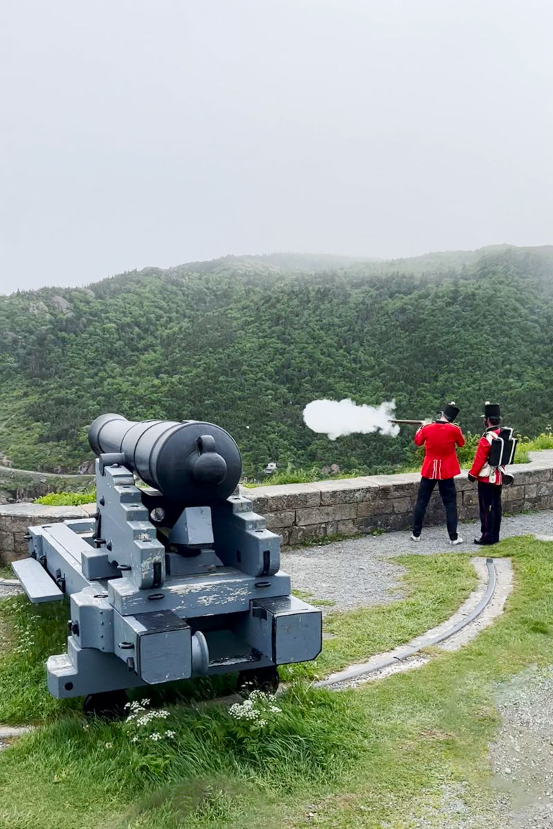 On ne voit rien, il fait froid, mais on a la foi. Donc, malgré tout, on se rend à la Queen’s Battery parce que quelqu’un semble tirer du canon, ou du fusil. C’est du fusil, c’est très bruyant et très salaud. Le guide avait de la poudre à canon dans le visage et sur les mains. C’était un fusil qui date de 1856. Je n’ai pas le nom.