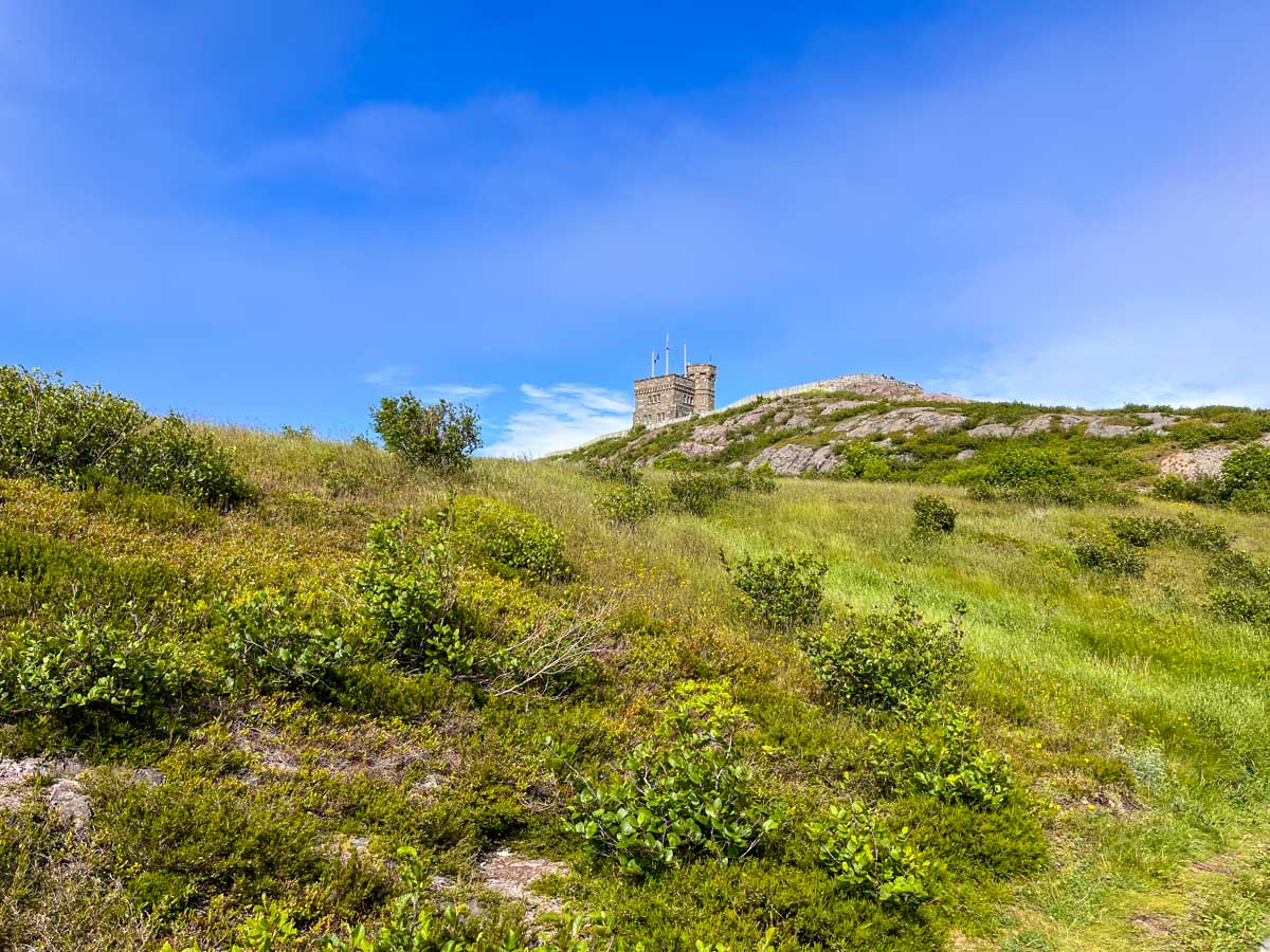 Notre section se nomme Silver Mine Head Path. C’est un sentier facile, sur la côte. J’ai vu une seule baleine. C’est un aller-retour qu’on débute à partir de Motion Dr, jusqu’à Middle Cove, là où nous étions la nuit dernière. On était avec Étienne, qui nous donnait quelques bonnes informations sur le sentier, et tout autour. Une fois le 4.5km de fait, on repart. Cette fois pour Signal Hill. On va aller luncher à cet endroit et faire une autre marche.