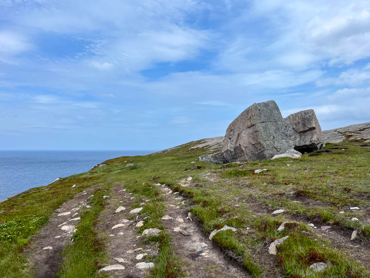 Première rando du matin (peut-être la seule car il va faire chaud), c’est une section de la East Coast Trail. Ce sentier est très long (336km). Il est parcouru par des gens qui ne font que des sections, comme nous, mais aussi par des backpackers qui passent plusieurs jours à compléter le trajet.