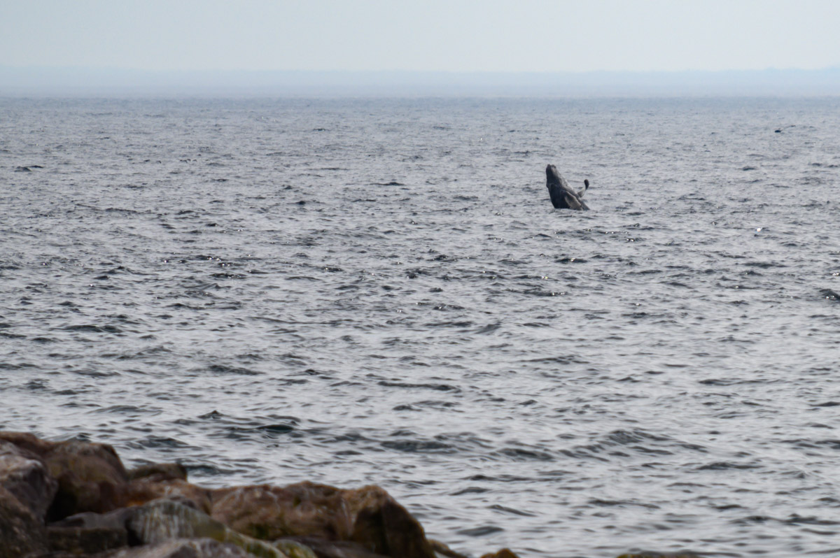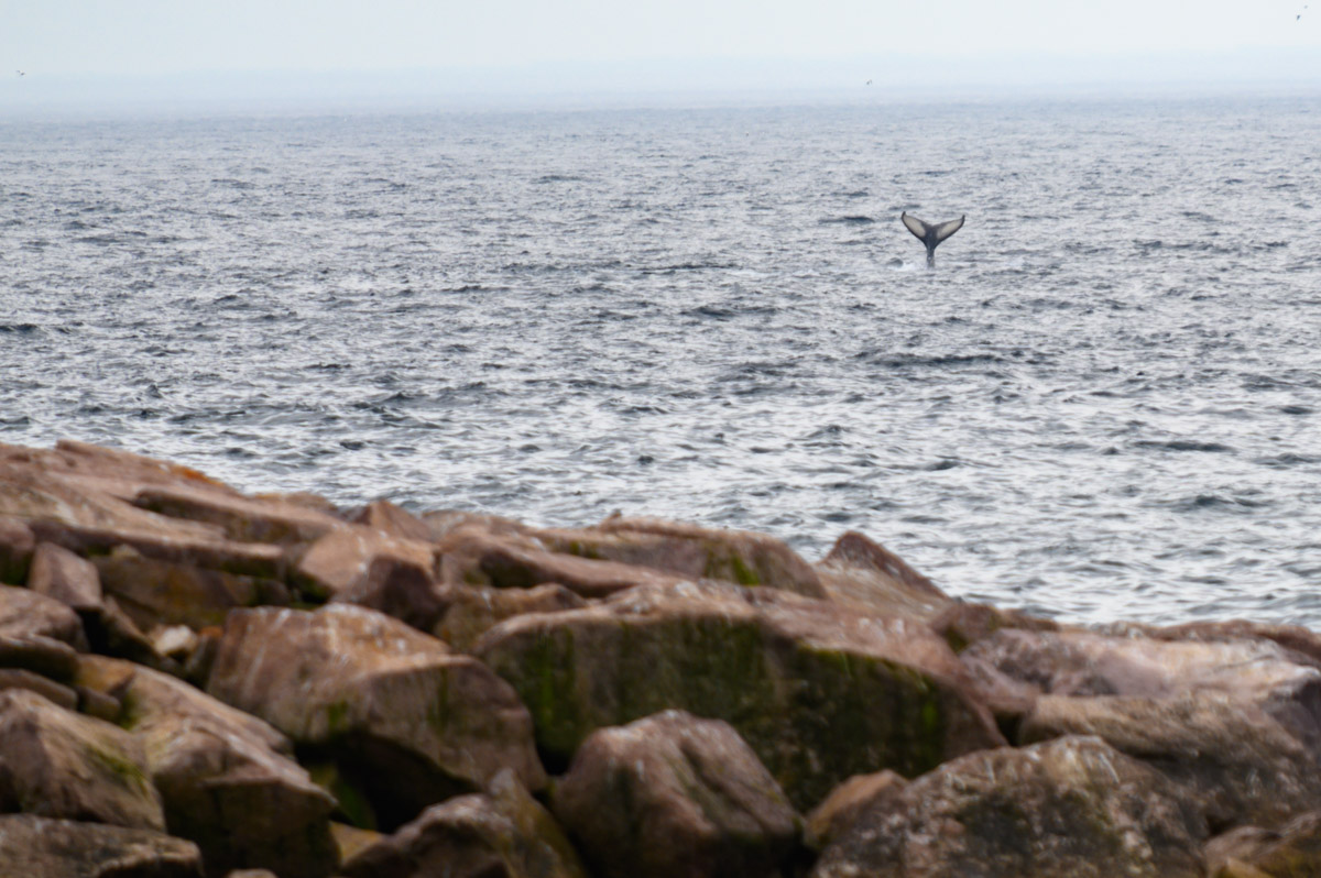 Revenons à leur localisation. Pendant que je discute avec les propriétaires, Louise cherche des baleines (les baleines à bosses). Si elles étaient à Cap St-Francis il y a quelques jours, elles ne doivent pas être bien loin maintenant.