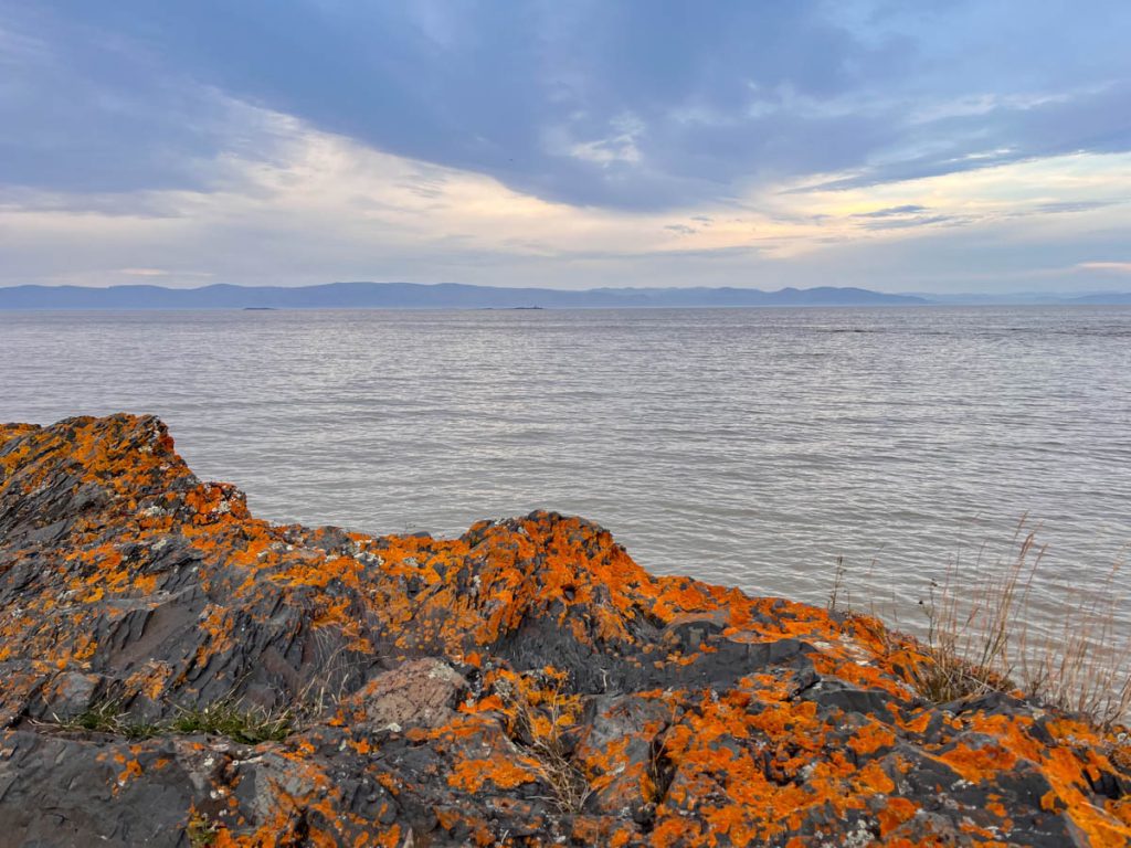Notre destination ce matin est Miguasha, un parc national de la SEPAQ. C’est une site protégé classé dans le patrimoine mondial de l’Unesco. On va voir des fossiles… On en a déjà vu à Joggins, en Nouvelle Écosse.