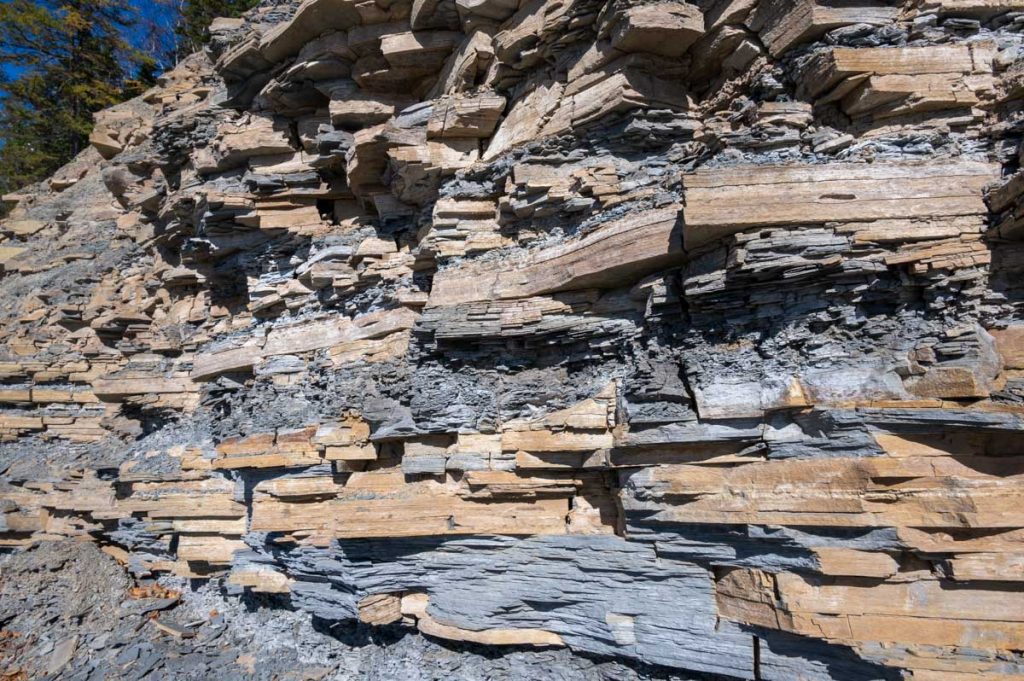 Deux heures plus tard, on sort de là. Complètement époustouflé… On est vraiment contenté. Mais ce n’était que le début. Il y a un sentier de 3.5 km à faire, ce n’est pas très long, mais… il y a des affiches tout le long du parcours, qui explique l’évolution de la terre depuis 450 millions d’années jusqu’à aujourd’hui. Nous sommes tout simplement en pâmoison.