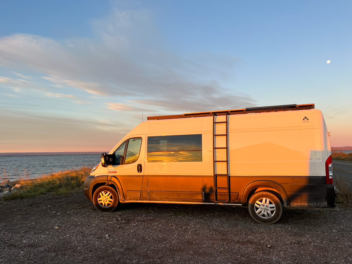 Notre Léonne bue (c’est le nom de la bière), retour au van pour le repas, Ozark et dodo. On est toujours sur le bord de l’eau, et c’est beau, il y a plein de canards qui jacassent.