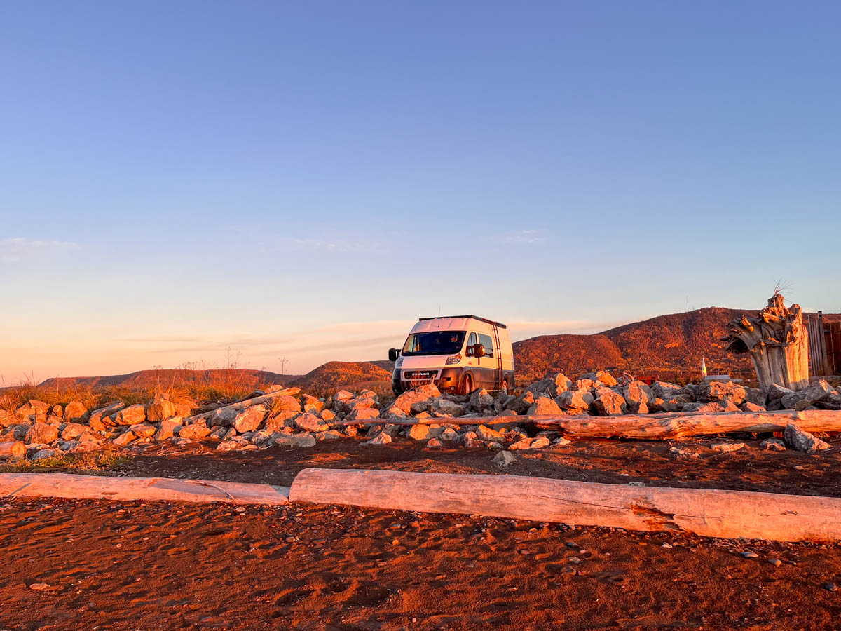 Notre endroit favori nous reçoit de nouveau, mais pour quelques heures seulement. On va à la douche. Tous les sites de campings loin de l’accueil sont fermés. Il n’en reste qu’un seul, et ce ne sont que des rustiques. Il n’y a plus rien.