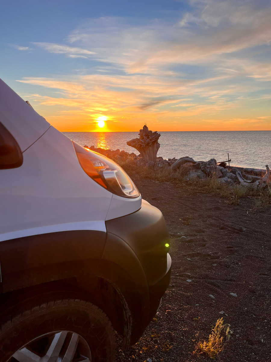 On rencontre des gens de Lévis qui ont voyagé pas mal, ils sont en Safari Condo. Ils étaient super gentils et nous donnent des bons trucs. Après un dernier soirée, cette fois sans coucher de soleil (très nuageux). On retourne au van.