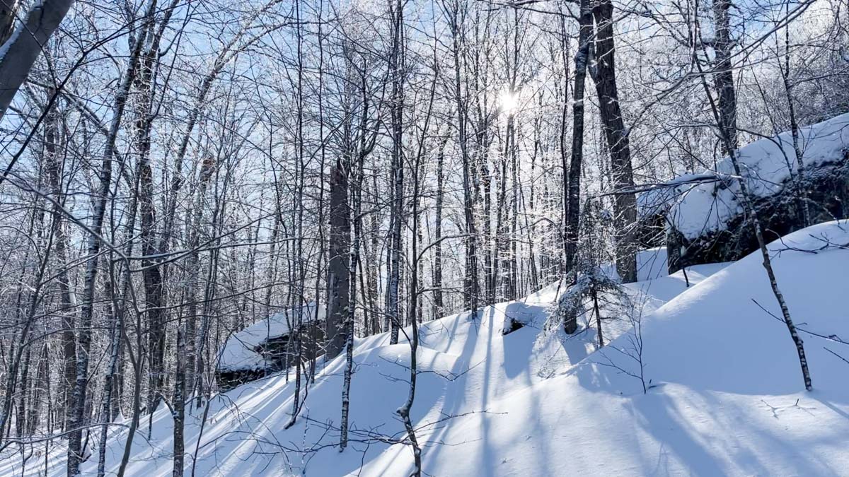 Le but, marcher, faire un pique-nique au sommet Condor. C’est tellement beau. Le soleil qui perce à travers les arbres, les glaçons aux branches qui fondent doucement. On adore avoir une van pour pouvoir faire ce genre d’activités, surtout de rester près de la région, sans devoir retourner à la maison. C’est le summum.