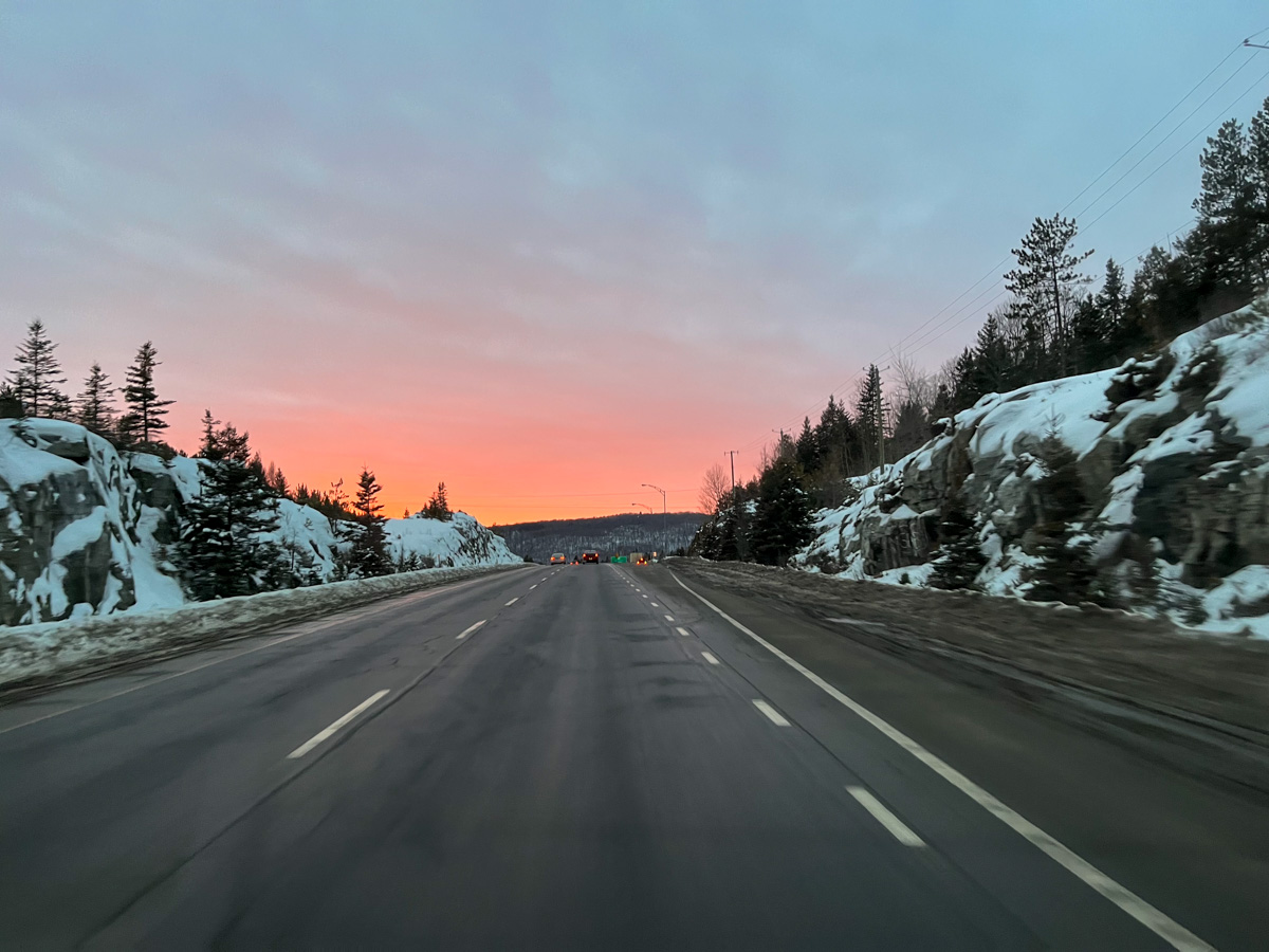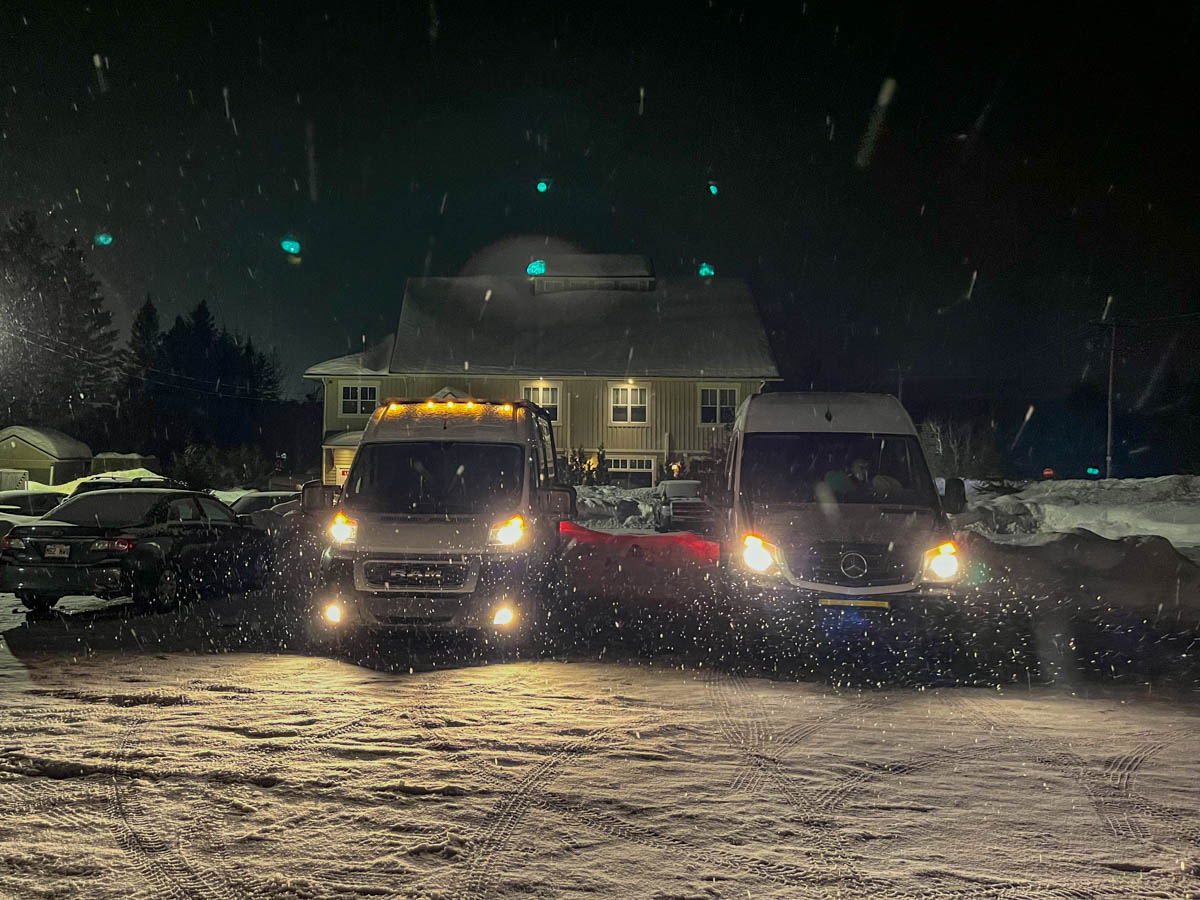 Nos amis, ils sont encore nos amis, nous textent, et ne veulent pas rire, au cas où un problème arrive. Ils savent que je me bidonnerai à mon tour. On tente à 2 nouvelles reprises, et impossible. Notre van a peur des côtes en hiver. On n’a pas le choix, on doit se taper le grand détour, soit passer par St-Sauveur. Ce qu’on fait. Ce fût notre vrai premier échec en Promaster en hiver. Ça prend une bonne inclinaison, chaussée glacée, et basse vitesse pour réussir à nous arrêter. C’était le scénario parfait. Il nous reste qu’à arriver à la prochaine destination à temps.