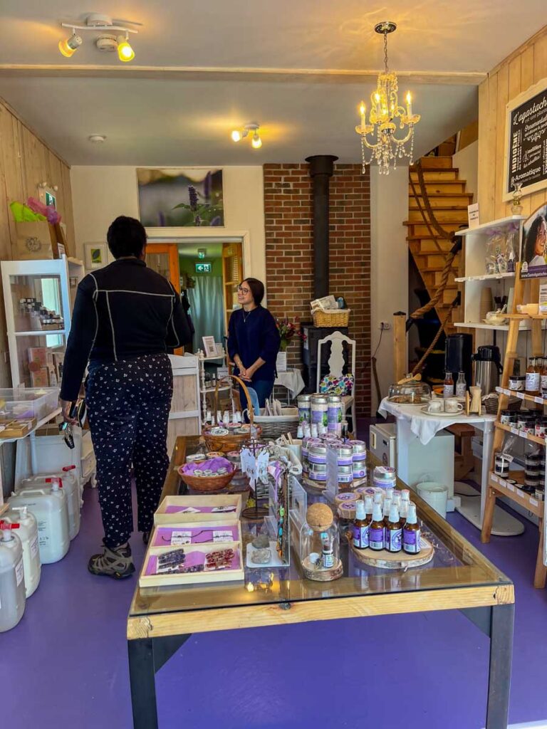 Premier arrêt, la boutique pour savoir à quel endroit stationner et faire les achats d’usage. C’est mignon, et j’ai déjà spotté un truc à déguster, chocolat à la fleur de sel. C’est eux qui le font. Je saute dessus mais c’est Louise qui paye. Je vais en manger peut-être 4 fois, c’est tout. Et pour y avoir déjà gouté, au moment d’écrire le blog, c’est un pur délice. Achats terminés on se dirige vers notre spot pour la nuit.