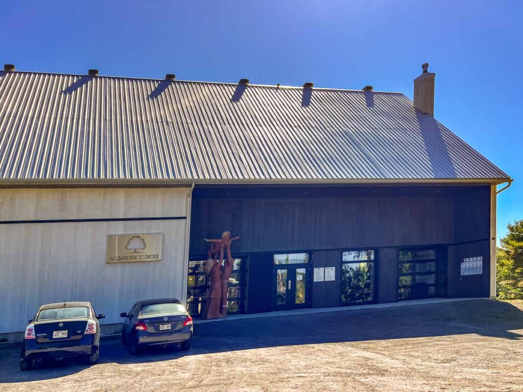 On arrive Au jardin des noix; c’est un bel endroit, c’est grand, très beau, on ne s’attendait pas à ça du tout. On s’informe pour le déroulement et on retourne dans la van pour luncher avant l’activité. Fait à noter très important, il y a beaucoup de noix dans la boutique, des écailles, etc. Si on a des allergies sévères aux noix, on ne va pas là.