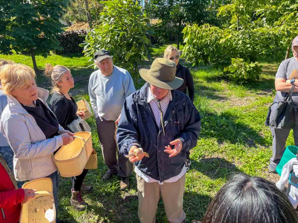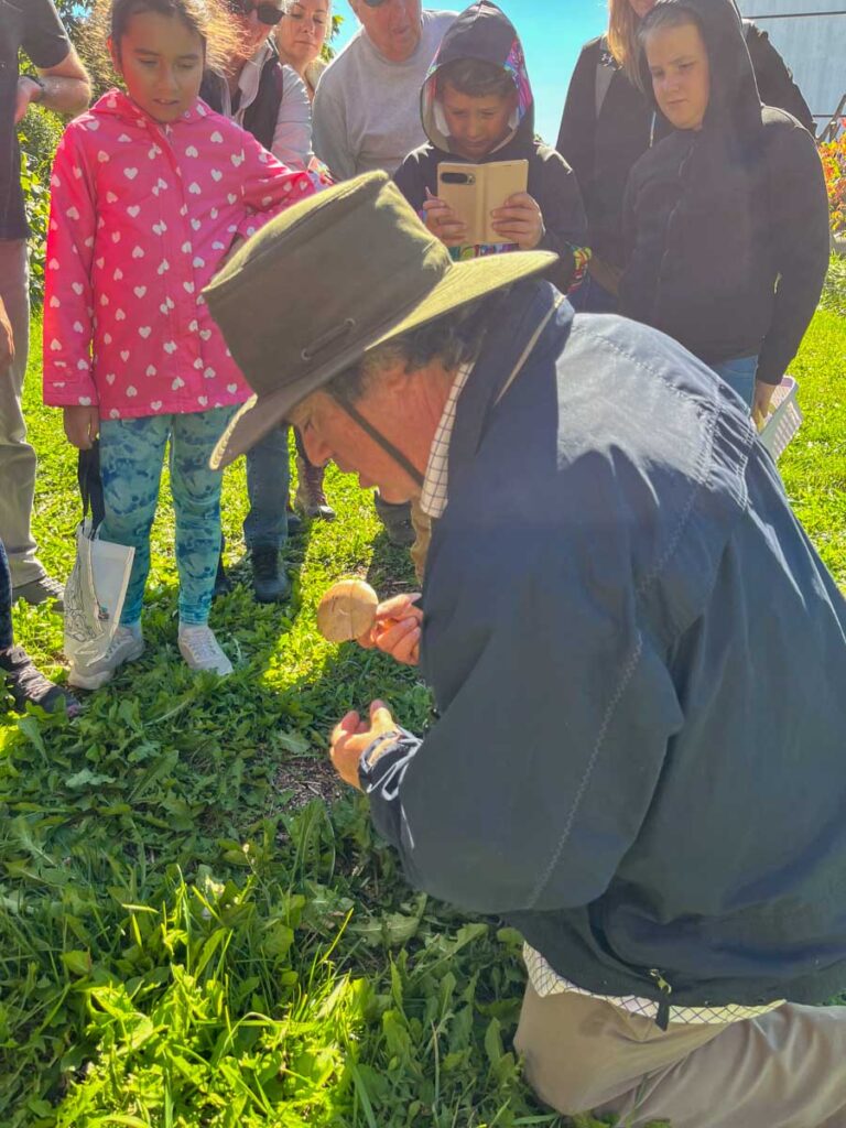 On part, d’un pas rapide, et on se rend au premier endroit. C’est bien simple, environ 15 minutes plus tard, on a cueilli tous les champignons qu’on devait cueillir, il n’y avait que deux variétés. On a tellement cueilli de champignons qu’on peut même en faire le tri et en jeter. Il y en tout simplement trop. Nous étions un peu déçus, il faut le dire. Mais on ne connaissait pas la suite, ce qui nous attendait réellement. Après cette cueillette expéditive, la magie a commencé. Il nous enseigne comment reconnaître le champignon qu’on mange, de celui qu’on va replanter (pour la même variété), comment le replanter, dans quel environnement le planter, comment le faire cuire, quelle quantité manger, comment les manger (pas cru en tout cas), etc. Le temps passe et passe très vite avec toutes ces informations, on adore.
