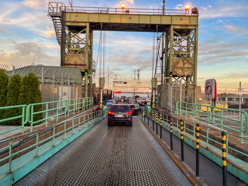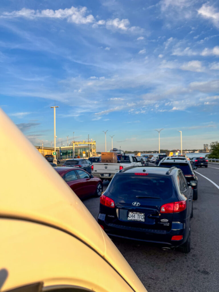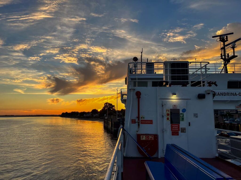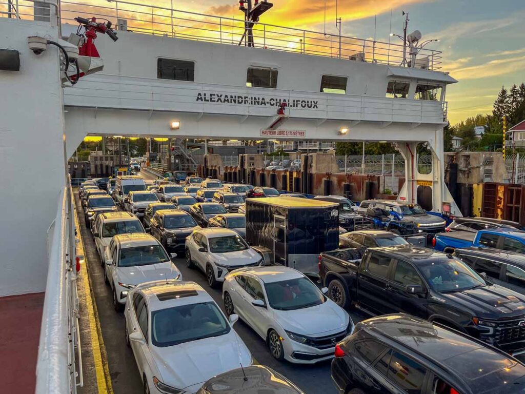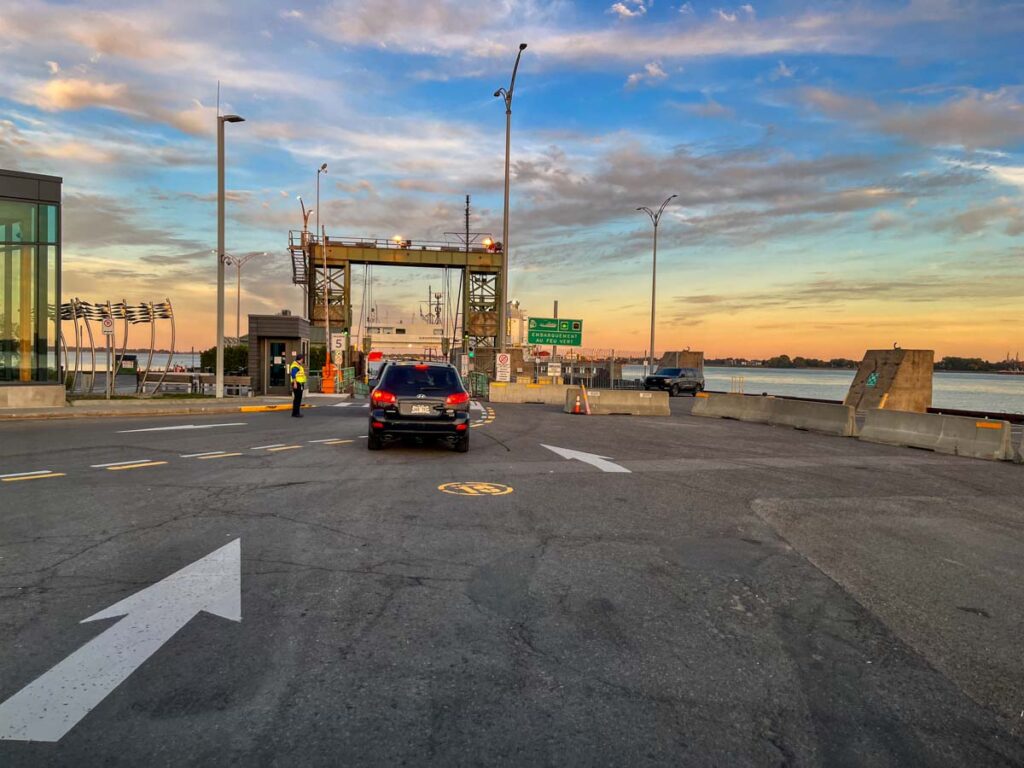 On a eu une belle journée remplie et le moment est venu de retourner à la maison. Je décide qu’on va passer par le traversier de Sorel, pour éviter les embouteillages. C’était le marathon de Montréal, je n’ai pas pris de chance. Sauf que… j’étais loin d’être le seul à avoir eu cette idée. On a attendu près d’une heure en ligne. Finalement, on a subi aucun embouteillage, et on a fait une belle croisière au coucher de soleil.
