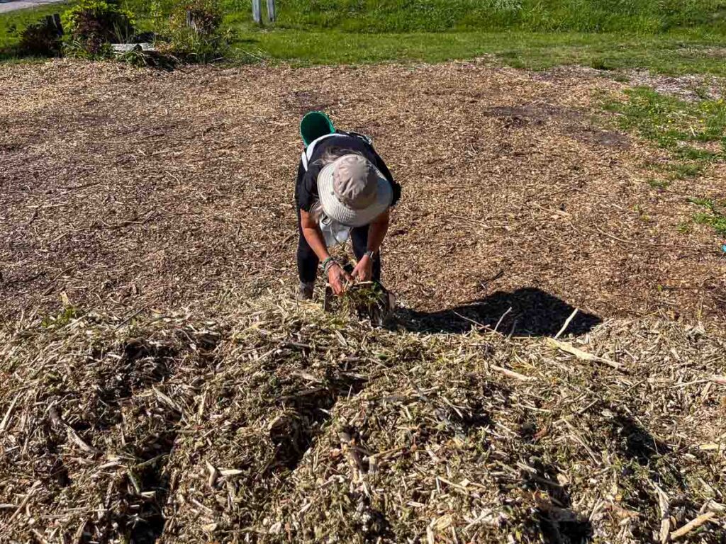De retour au bâtiment principal, des gens s’affairent à préparer les champignons, à les couper, à couper des herbes qui assaisonneront le repas. Un participant a cueilli des champignons chez lui, pour savoir si c’est comestible ou pas. Yvan nous explique ce que sont ces champignons, comment les cuire, comestible ou non… On en apprend encore et encore.