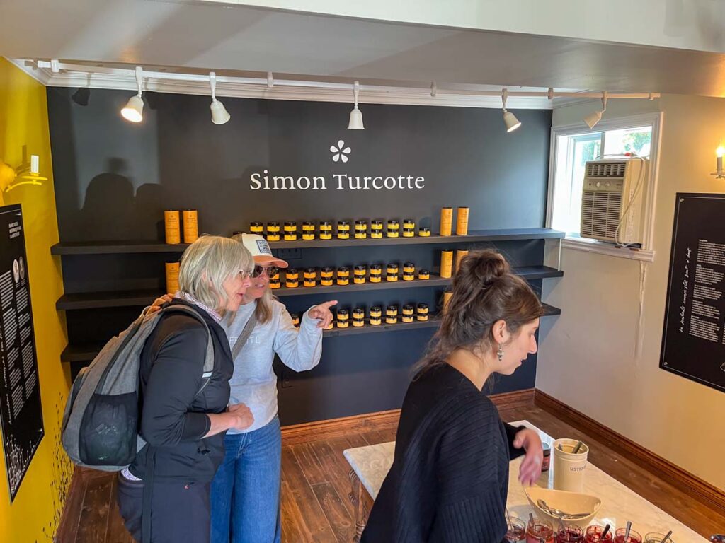 En passant, c’est dans ce petit village que se trouve les fameuses confitures de Simon Turcotte confiturier! Selon certain, ce serait les meilleures confitures du Québec (il parait même que la Reine d’Angleterre en avait reçu en cadeau). Elles sont concoctées avec des ingrédients québécois en petites quantités. Ce sont des produits d’exception et Louise n’a pas pu résisté à y faire quelques achats. En plus, cette année il y a des moutardes qui se sont rajoutées à l’offre! Des délices à découvrir et à déguster.