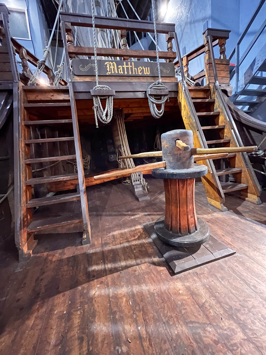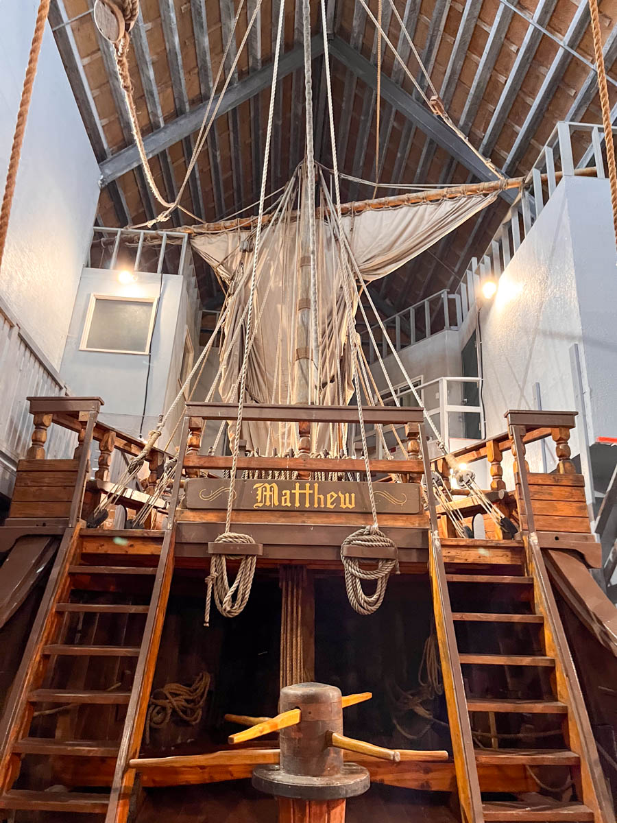 Aujourd’hui nous savions qu’il y aurait de la pluie. Les météorologues sont des devins, il ne faut pas l’oublier. Après avoir pris notre temps, et publié le blog, on va se faire un premier musée. C’est le Matthew Legacy, soit l’histoire de John Cabot (Giovanni Caboto) lors de son arrivée en 1497 à Bonavista. Il y a une réplique de son navire, Matthew (nommé en hommage à sa femme Mattea) à visiter. C’est une caravelle.