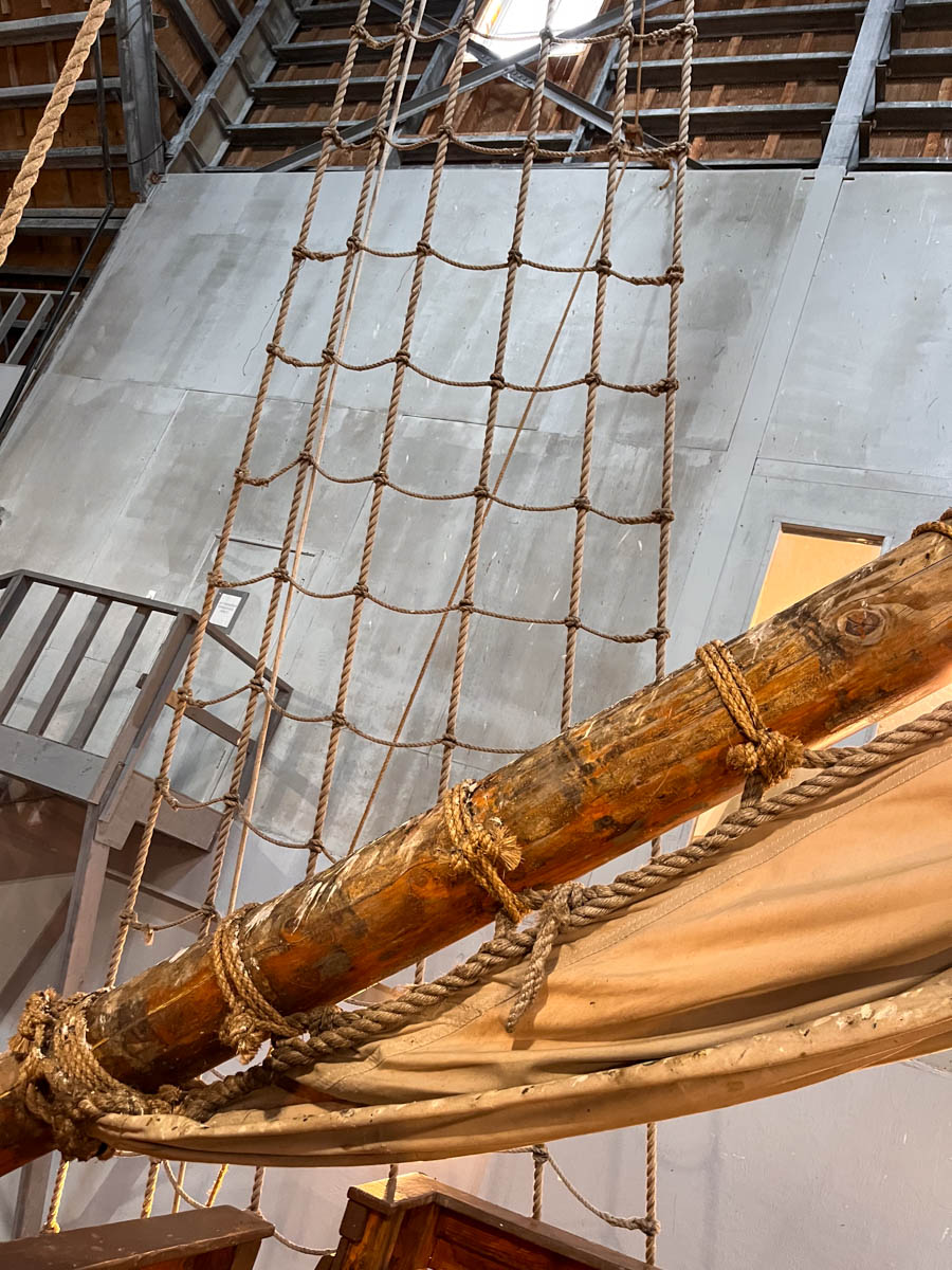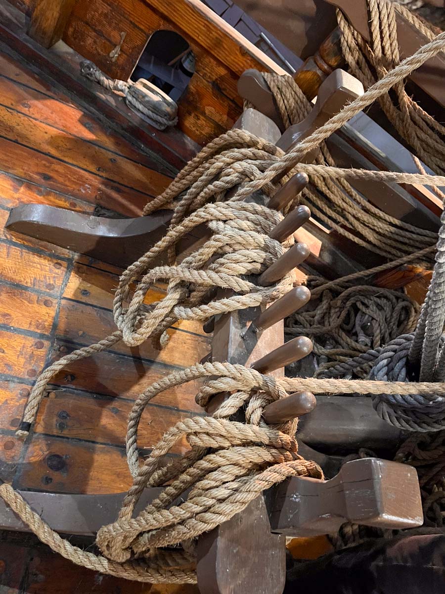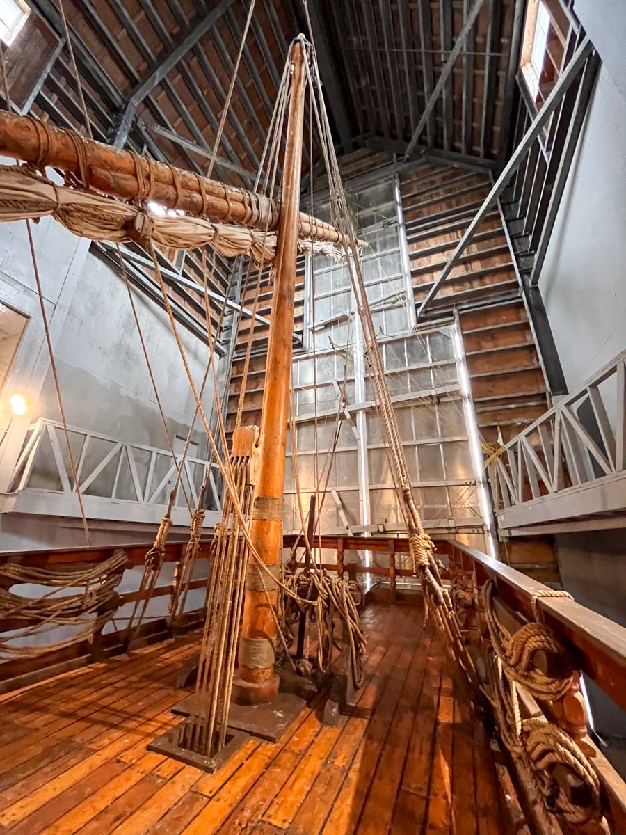 Honnêtement, je n’aurais jamais pris la mer avec ça. Il n’y avait que 3 cabines qui n’étaient pas dédiées aux marins. Eux, ils couchaient par terre, où ils le pouvaient. Aucun chauffage à bord (on sait qu’il fait froid à Terre-Neuve), ça devait donc être pénible. La réplique est maintenant en permanence à l’intérieur, car, exposée aux intempéries, elle devenait de plus en plus endommagée. Monter dans ce bateau, qui a déjà vogué (pas très loin de Bonavista), ben je me sentais comme un ti-gars avec son plus beau jouet. J’ai toujours adoré les voiliers.