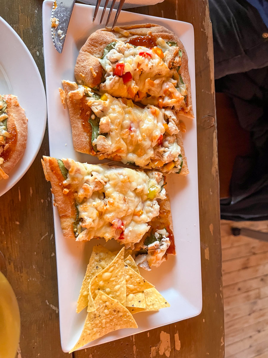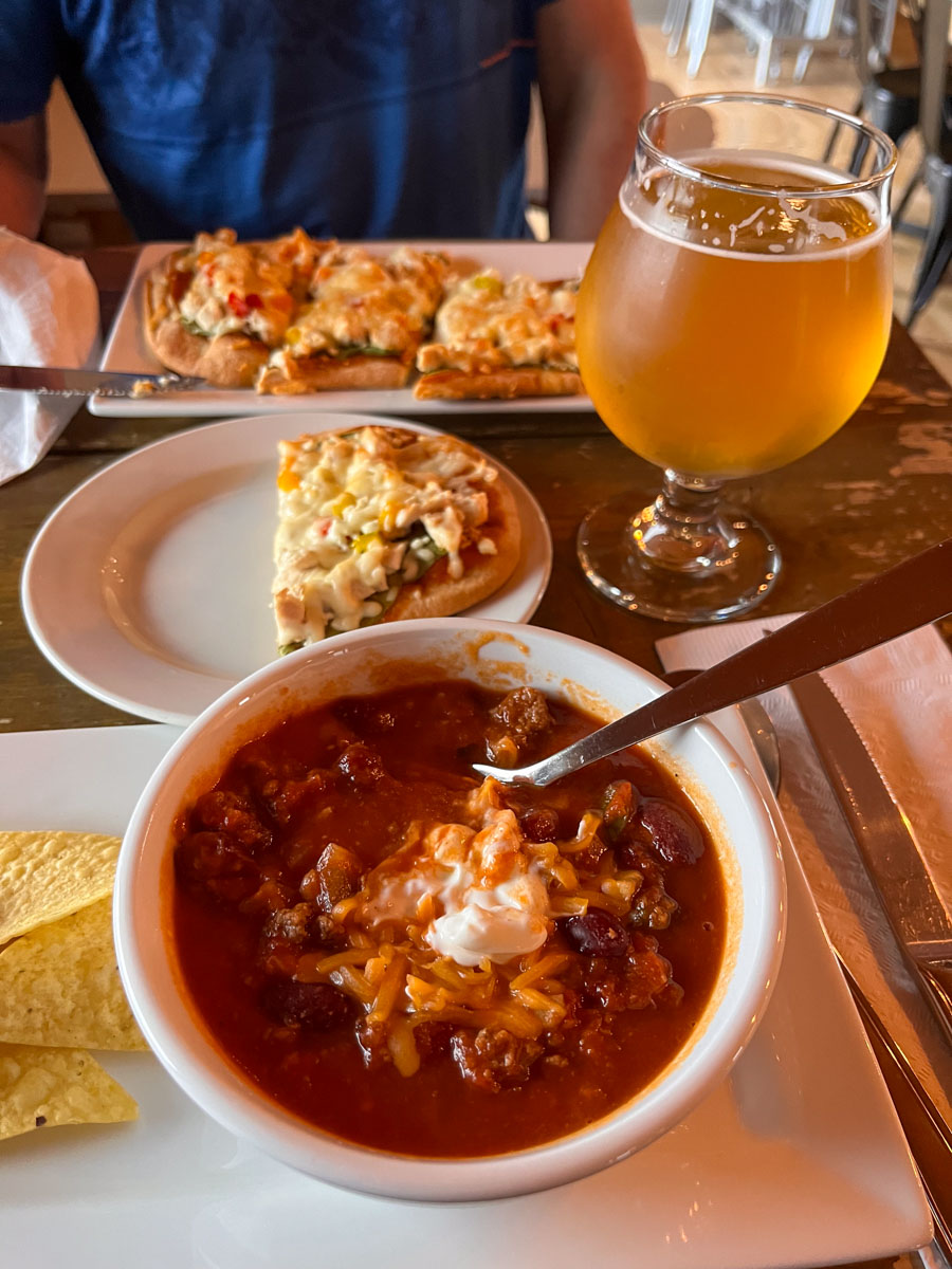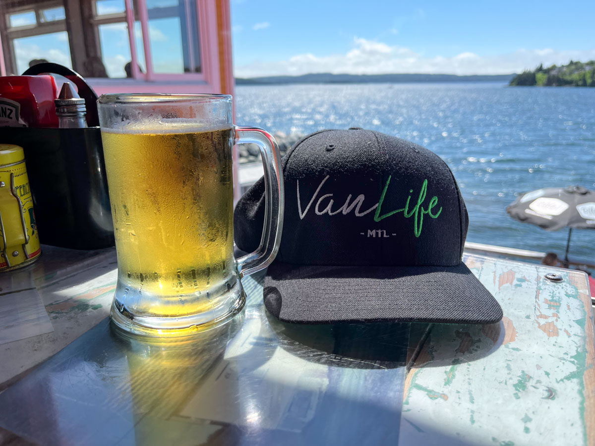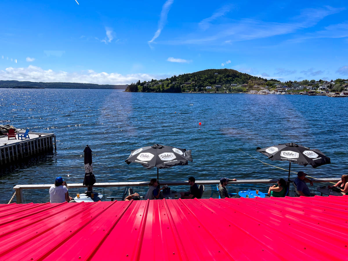 Moi qui m’attendais à voir une autre belle communauté, avec des maisons typiques, non. On se rend à la Micro-Brasserie Dildo. On se sent comme si nous étions à Magog. On nous donne un numéro pour qu’on nous assigne une place. Il y a beaucoup de touristes. Il y a encore plus de monde qu’à Twillingate dans ce resto. Mais pas de van, hmmmm.
